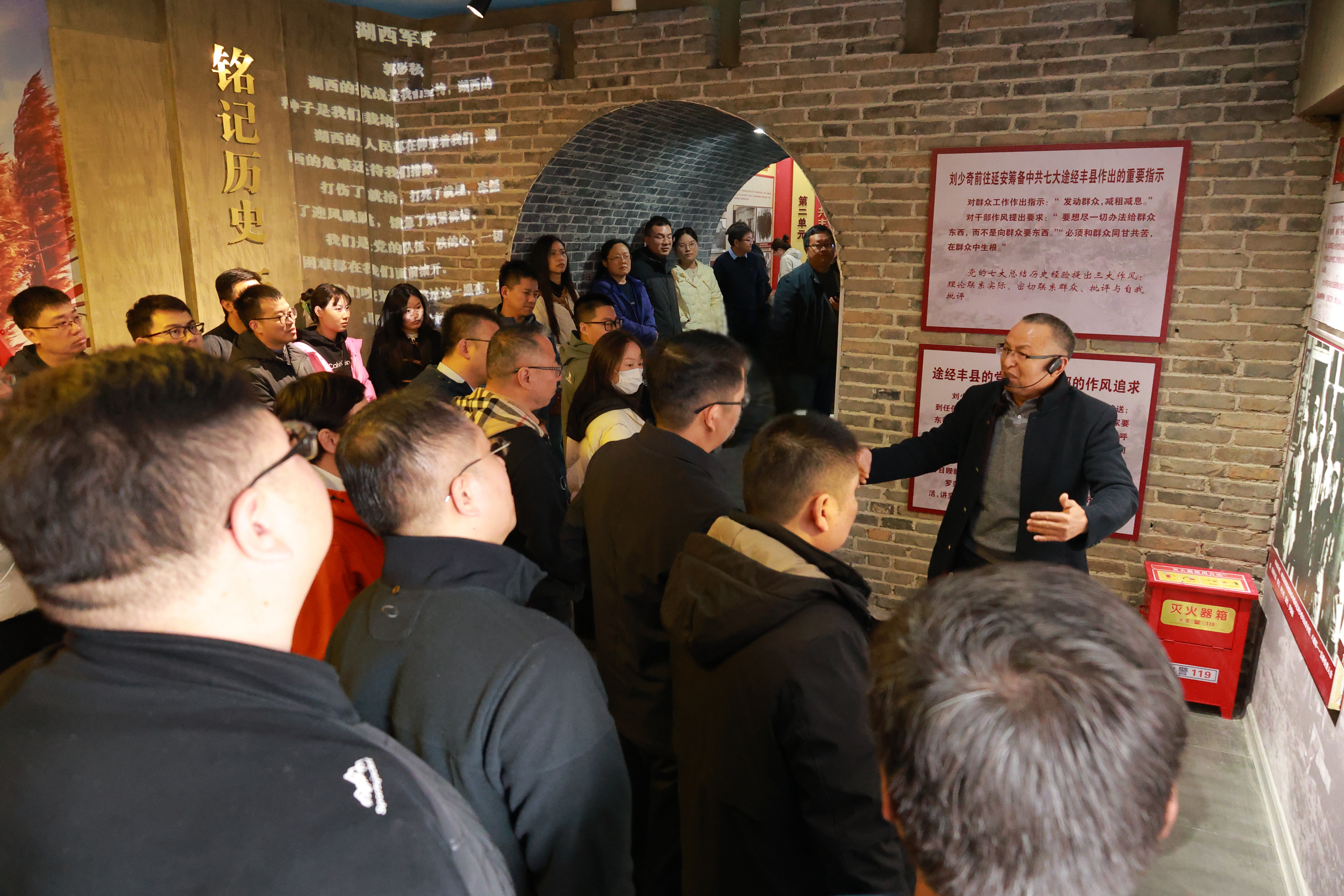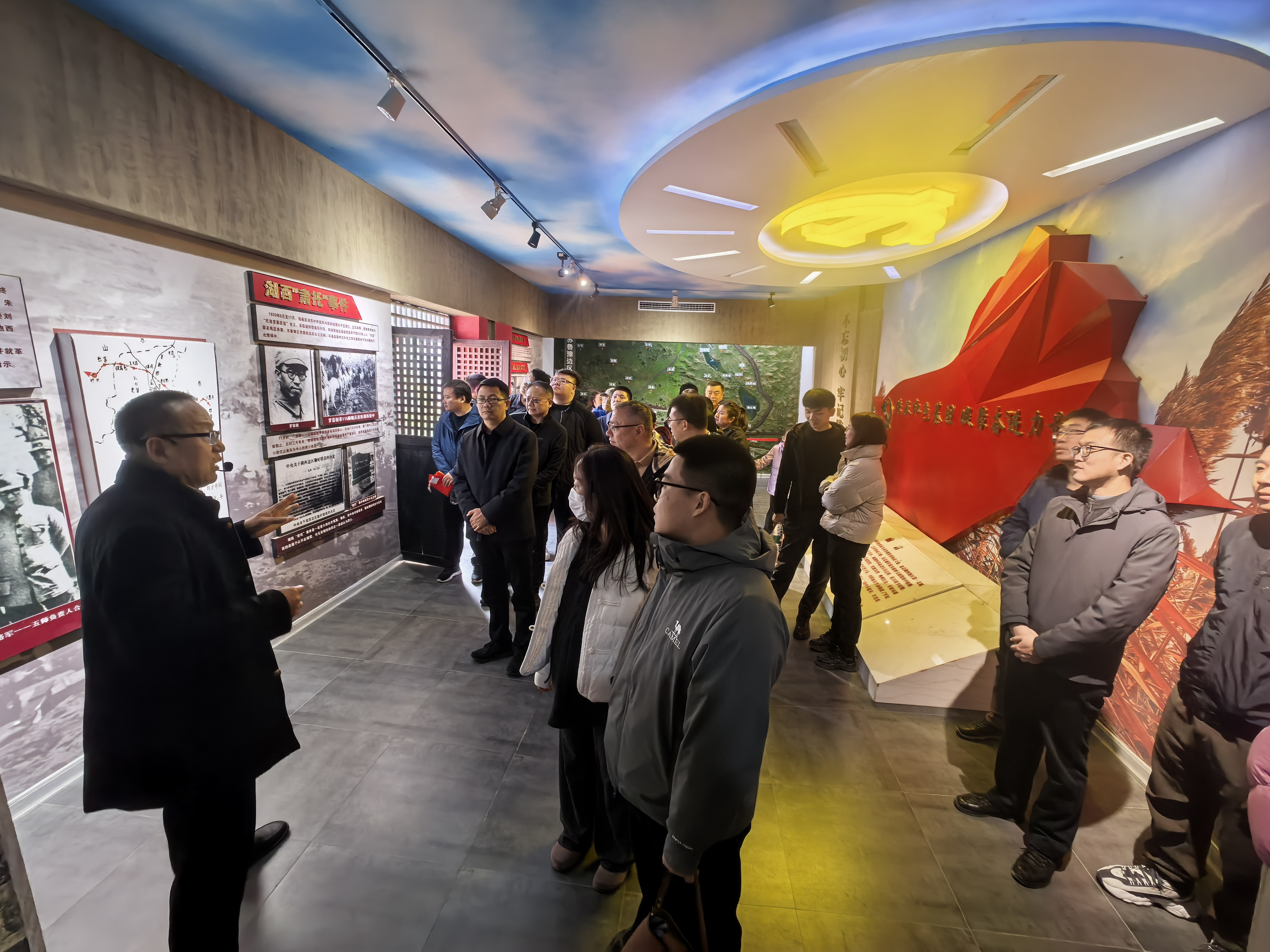 丰县县委旧址位于徐州市丰县首羡镇张后屯村,旧址于1930年成立丰县首个党支部——中共尹小楼党支部,1931年中共丰县县委在此成立,后成为抗战时期湖西革命根据地核心办公地。陈列馆主要分为湖西革命根据地、中共丰县县委、首羡战事、湖西英模、军民情谊等五大单元,在讲解人员的带领下,大家通过大量珍贵的历史图片、文献素材、影音资料回顾了中国共产党成立时期的一段不同寻常的历史。
