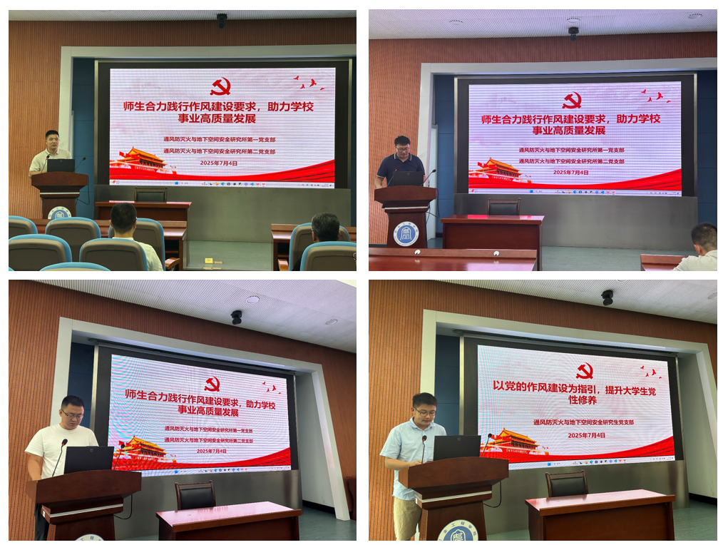 为深入学习贯彻党的创新理论,推动中央八项规定精神学习教育,进一步巩固第一次“集中大课”学习成果,7月4日下午,通风防灭火与地下空间安全研究所第一党支部、第二党支部、研究生党支部于矿业科学中心A200会议室联合开展第一次“集中大课”学习研讨会交流会,会议由第一党支部书记戚绪尧同志主持,三个党支部全体党员共同参与学习,各党支部的党员代表依次围绕本次“集中大课”学习内容,结合自身工作、科研与思想实际,进行了深入交流与研讨。