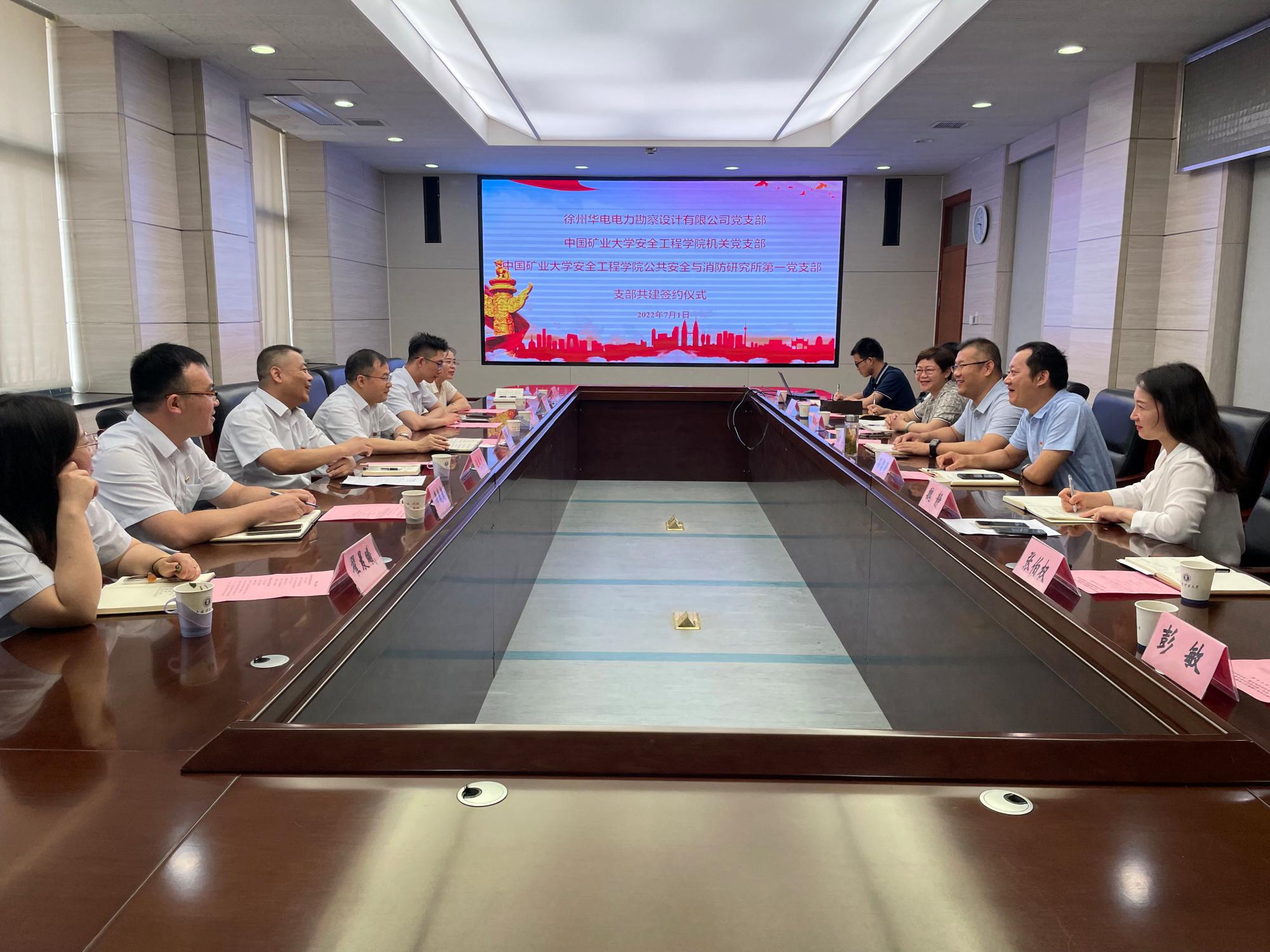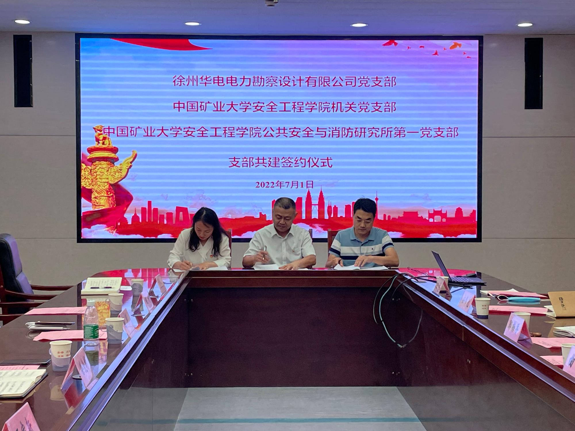 矿业科学中心A412会议室,举行“庆祝中国共产党成立101周年,推进学院党建与事业融合发展”校企党支部结对共建签约仪式。参加结对共建的党支部分别是:徐州华电电力勘察设计有限公司党支部、矿大海角社区