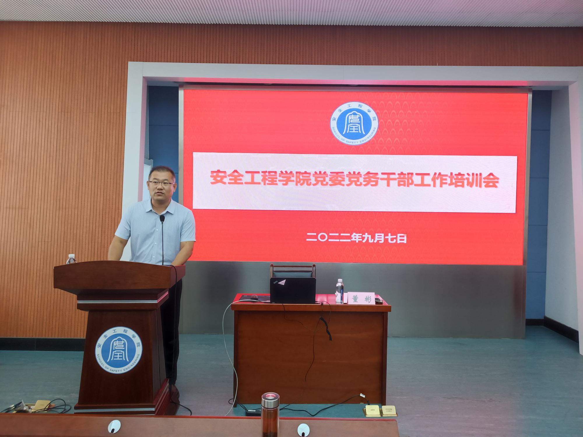 党委在矿业科学中心A200报告厅举办党务干部工作培训会,会上,邀请校党委组织部组织员董彬老师作报告。学院党委委员,各党支部成员,全体专兼职辅导员参加了培训会,会议由院党委书记曲颂主持。