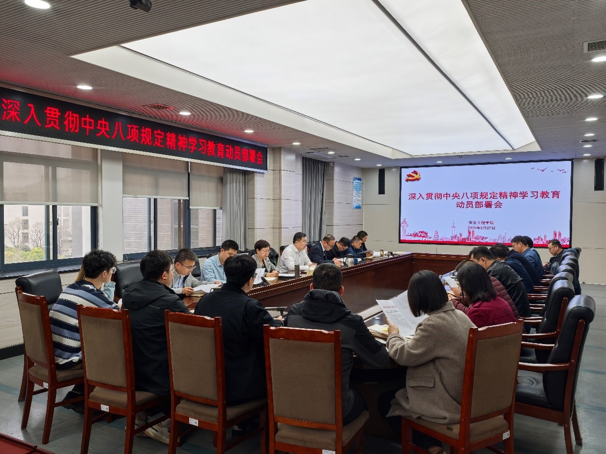 3月27日下午,安全学院在矿业科学中心A412会议室召开深入贯彻中央八项规定精神学习教育动员部署会,学院党委中心组成员和全体党支部书记参加了会议。会议由院党委书记宋冰主持。