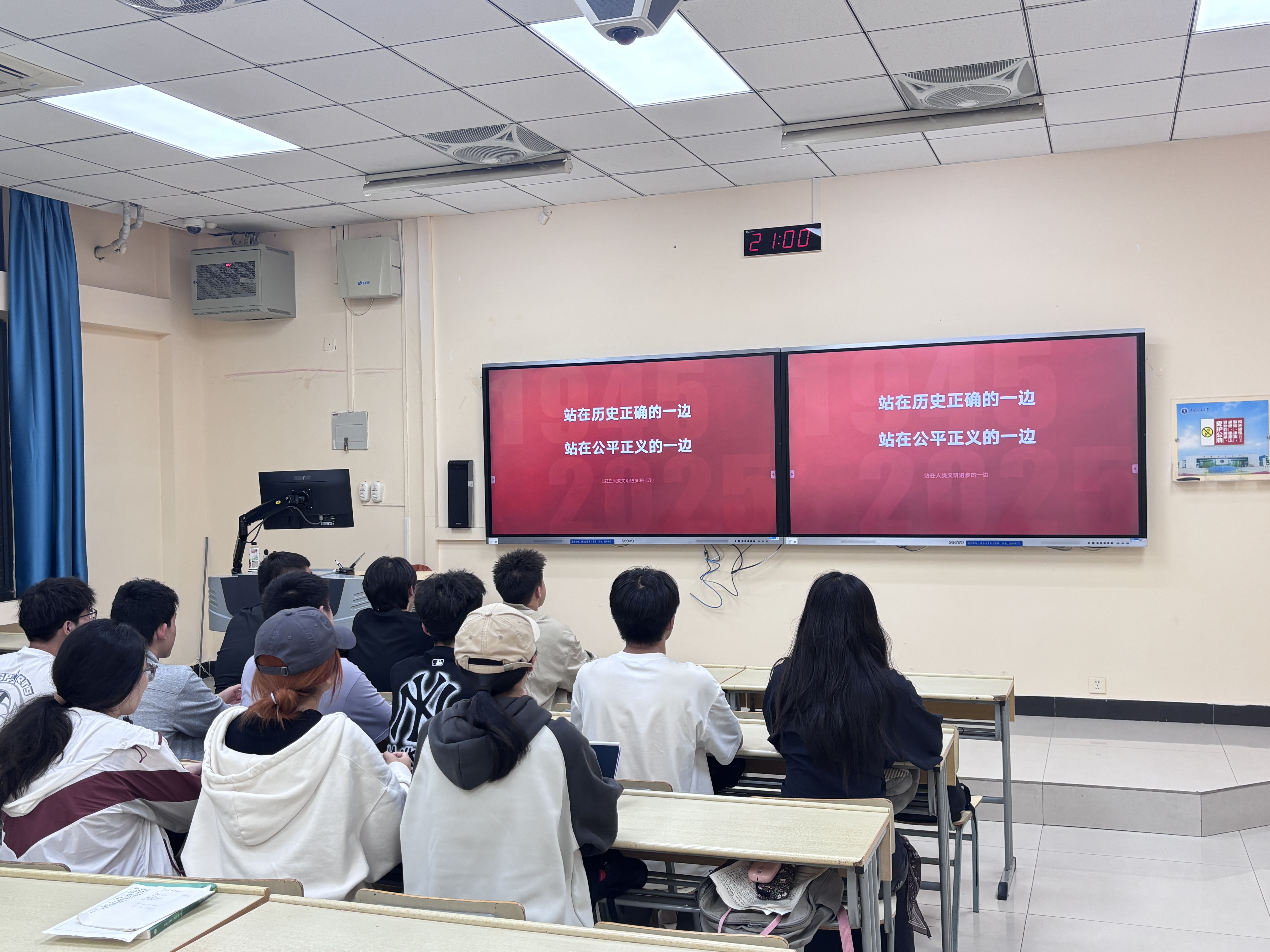 9月18日晚,学院于博四B104教室组织学生党员工作站成员参与“弘扬伟大抗战精神,做光荣自豪中国人”主题思政大课,共同纪念中国人民抗日战争暨世界反法西斯战争胜利80周年。
