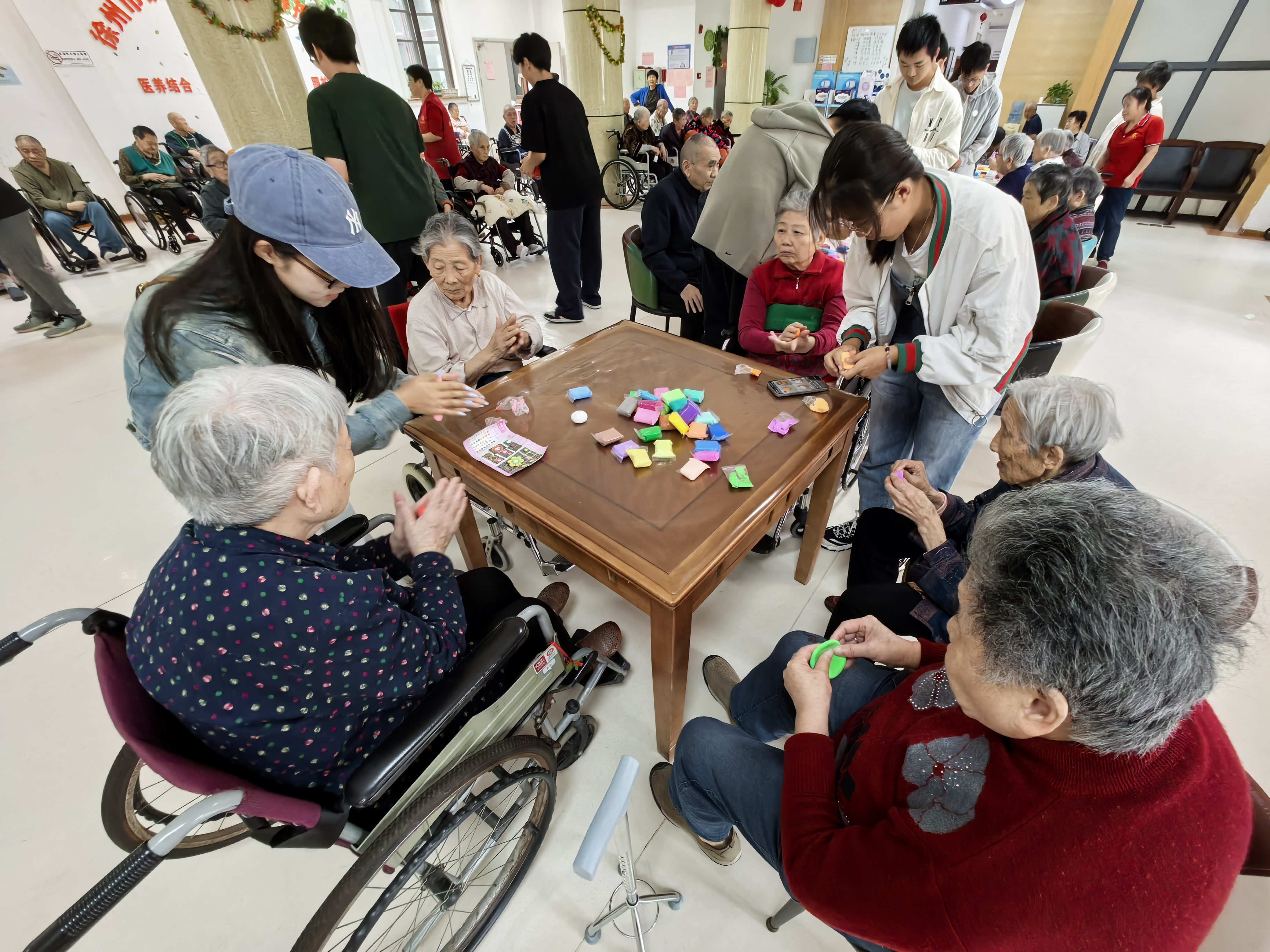 活动中,志愿者们陪伴老人们共同参与手工制作,耐心协助他们用橡皮泥塑造出各种生动形象。老人们积极参与,现场气氛温馨融洽。志愿者们还与行动不便的老人开展传球互动游戏,在传递与协作中锻炼手脑协调能力。活动尾声,志愿者们为老人演唱了多首经典歌曲,熟悉的旋律唤起老人们的美好记忆,不少老人轻声跟唱,场面感人至深。