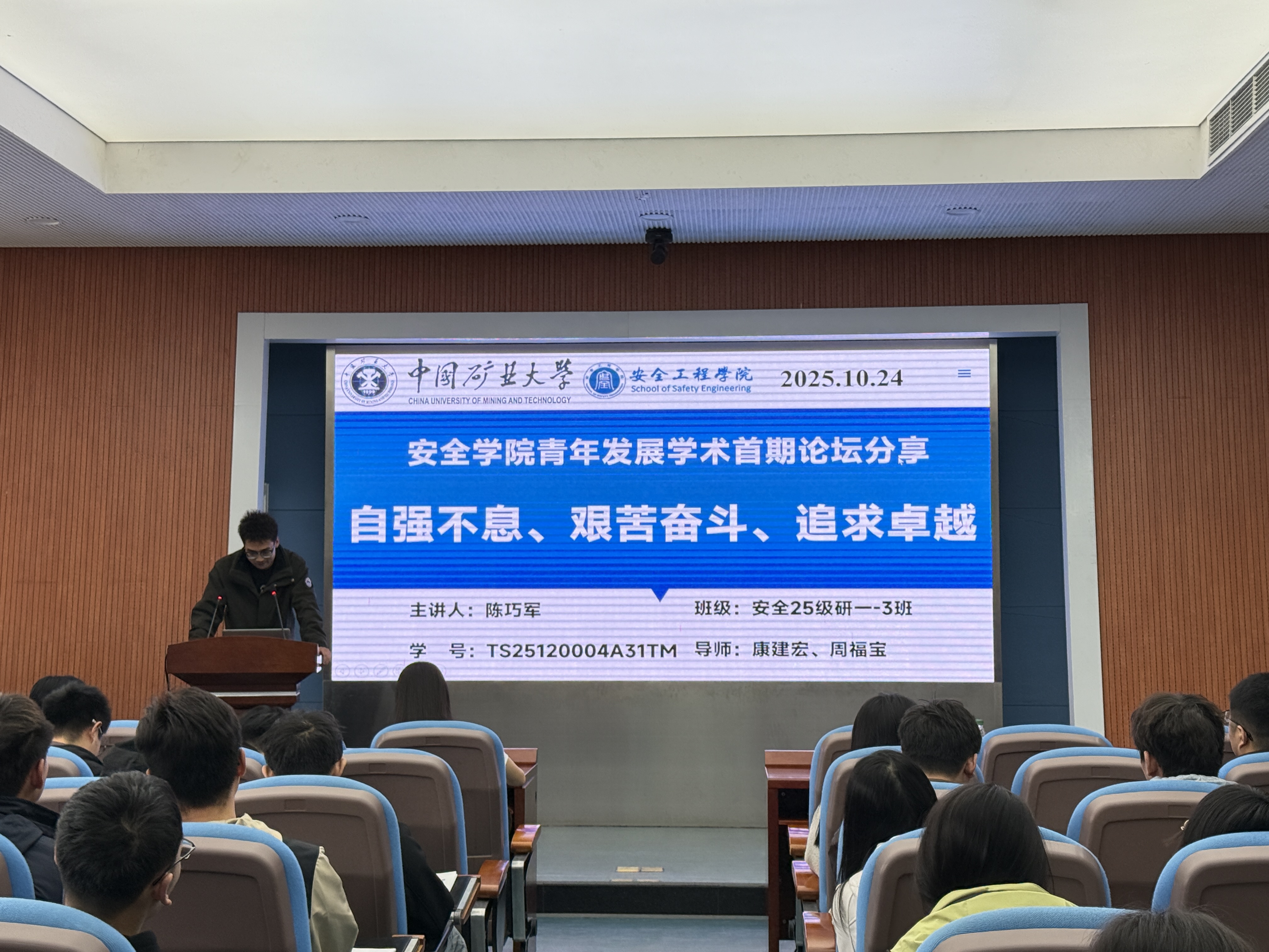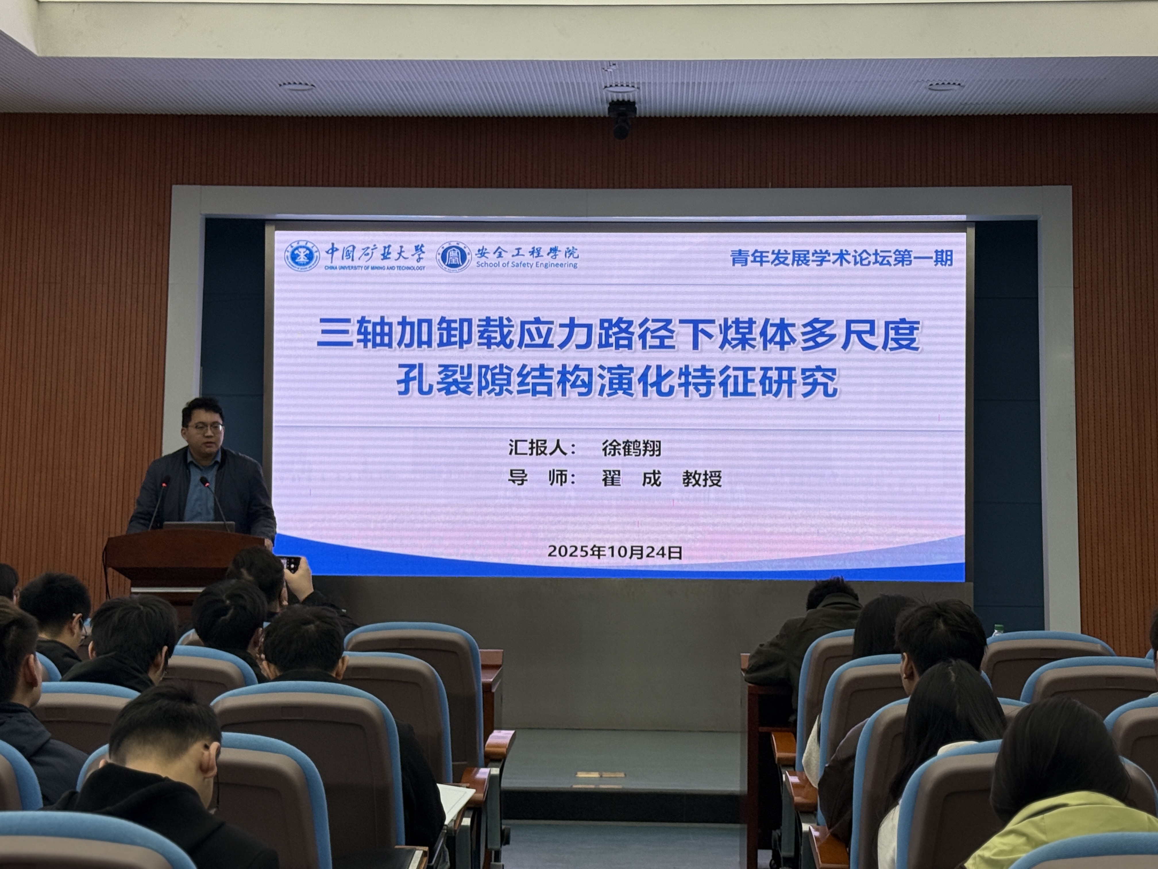为分享优秀学生学术经验、营造良好科研氛围,10月24日,学院研究生会于矿业科学中心A200会议室举办第一期青年发展学术论坛。活动由学工办主任刘世通主持,特邀23级博士生徐鹤翔、22级直博生徐宏阳、25级硕士生陈巧军担任分享嘉宾,学院全体研究生参加。