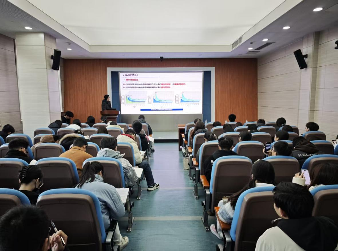 论坛上,三位主讲嘉宾围绕矿山安全前沿课题进行学术分享。沈扬以《爆破裂纹与岩石对称结构面的互馈扩展机制与形态演化》为题,结合其在煤岩体动静态断裂及灾害防控方向的研究积累,系统阐述了爆破裂纹与岩石结构面的相互作用规律。卢岩森聚焦煤矿瓦斯爆炸灾害防治领域,围绕《密闭直巷内瓦斯-空气分段分布下爆炸传播特性研究》,分享了瓦斯爆炸传播规律的最新研究成果。赵佳佳以《煤-水-气界面宏微观润湿特性研究》为题,深入解析了热烟气驱动下低渗煤层增透机制。报告后,主讲人结合自身科研经验,就课题立项、论文撰写、项目申报等问题与现场同学进行交流。