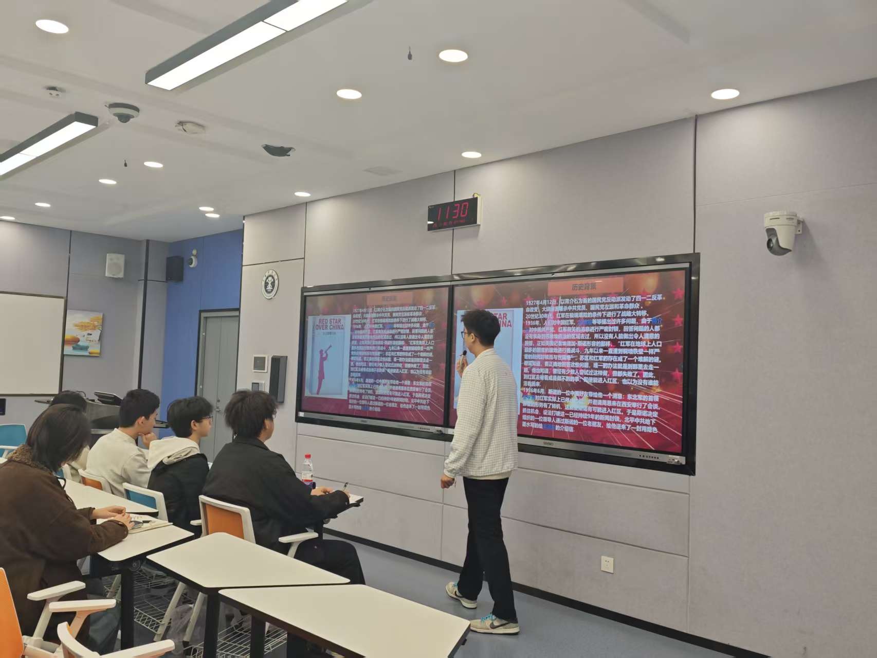 分享会以小组为单位进行,各小组代表围绕红色精神、法治建设、传统文化等主题,依次分享了《红岩》《圆圈正义》《小顾聊中国画》《红星照耀中国》等著作的阅读体会。每组成员发言后,现场随机抽取其他小组进行交流与点评。最后,评委对各组表现进行综合评议与总结。