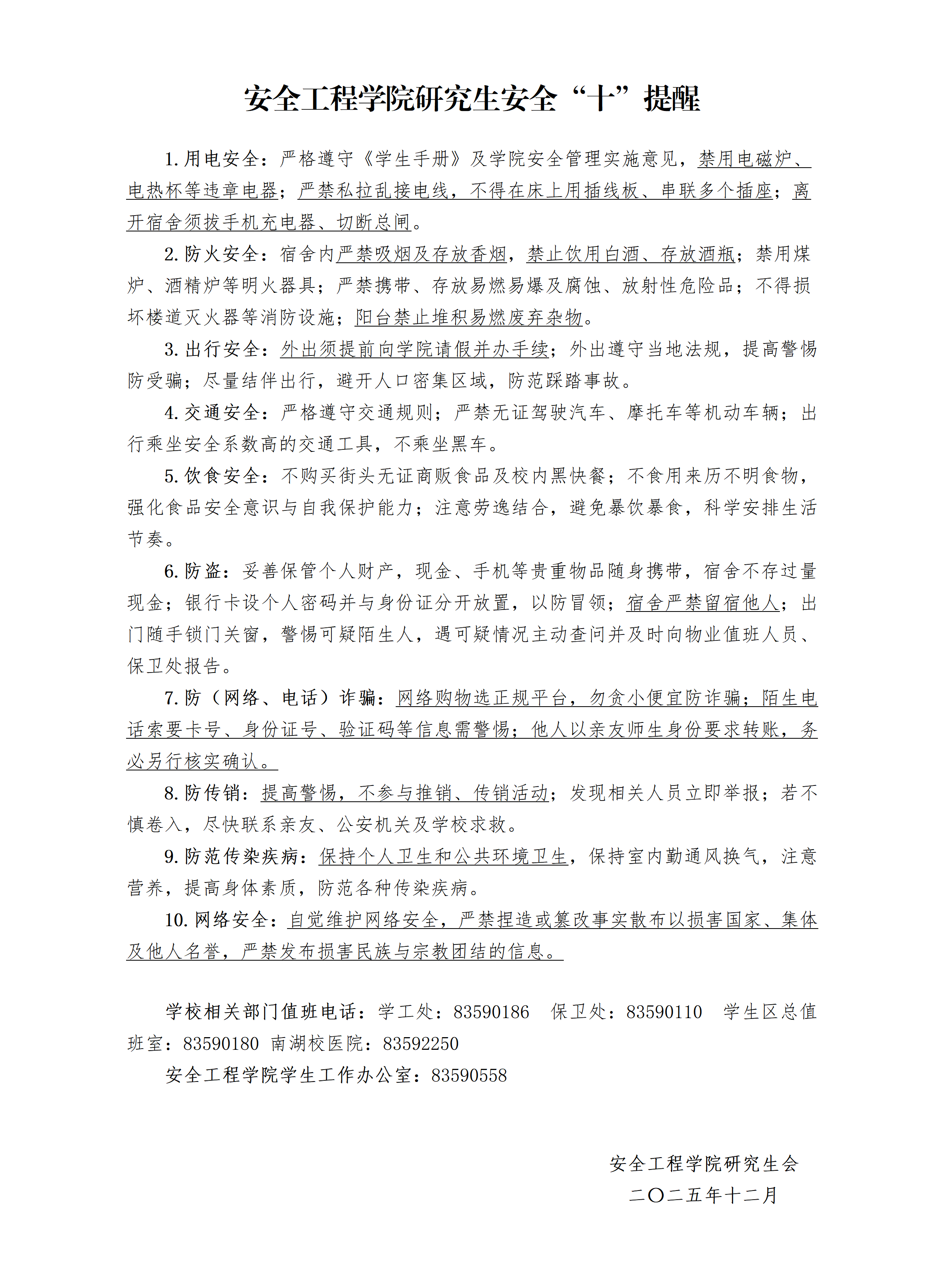 学院研究生安全“十”提醒