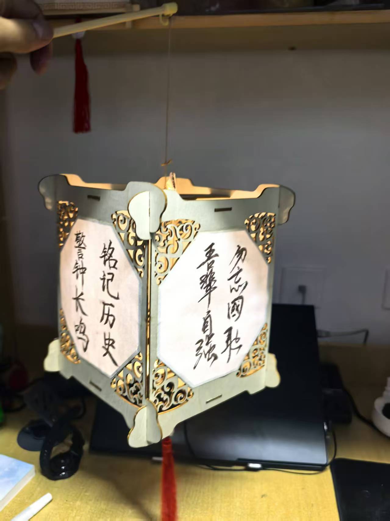 本次活动以纪念一二九运动为核心主题,鼓励同学们将爱国情怀融入手工创作之中。活动得到了同学们的积极响应,大家踊跃报名参与。创作过程中,同学们充分发挥想象力与动手能力,或独自构思创作,或组队协作创新。从竹篾的精细弯折、宣纸的轻柔裱糊,到流苏的剪裁装饰、灯面的图案绘制,每一个步骤都凝聚着同学们的巧思。灯面上 “铭记历史,吾辈自强”的铿锵文字,饱含着新时代青年对历史的敬畏与对祖国的热爱。活动尾声,评委老师们对所有参赛作品进行了评审,最终评选出一、二、三等奖,并对优秀作品予以表彰。