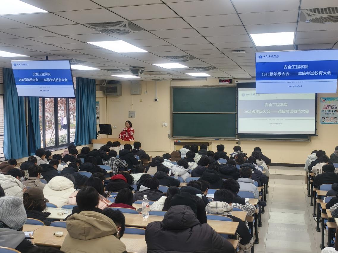 为加强考风考纪教育,引导学生做好学业与生涯规划,12月31日,学院在博学四号楼A103召开诚信考试教育大会暨2023级年级大会,2023级全体学生参加。