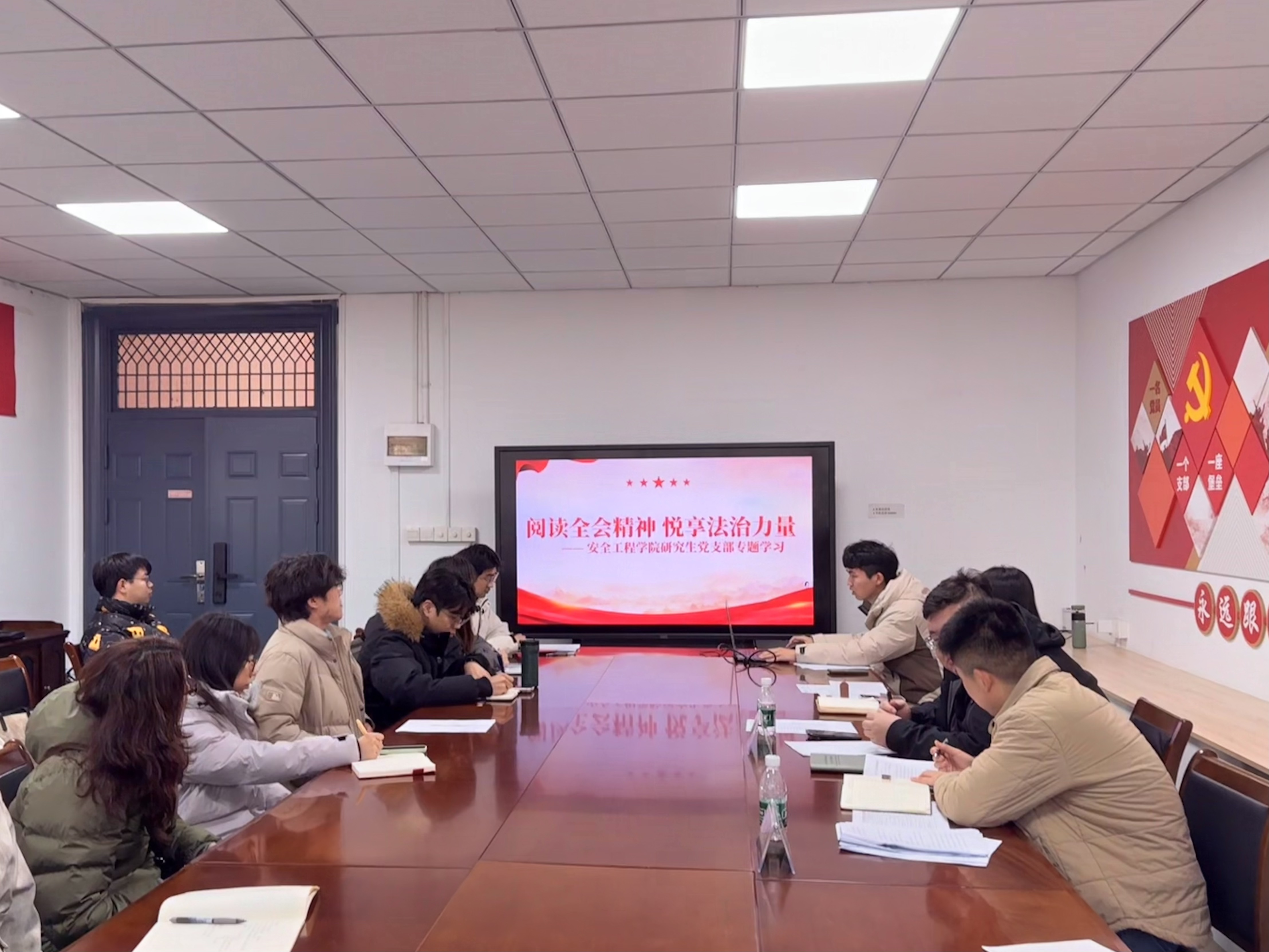 为深入学习党的二十届四中全会精神,把握习近平法治思想核心要义,强化研究生党员理论武装与使命担当,1月7日下午,学院在矿业科学中心A322会议室举办“阅读全会精神·悦享法治力量”专题学习会。学工办主任刘世通、辅导员魏铁飚出席,各学生党支部书记、副书记参会,会议由兼职辅导员魏嘉辰主持并领学。