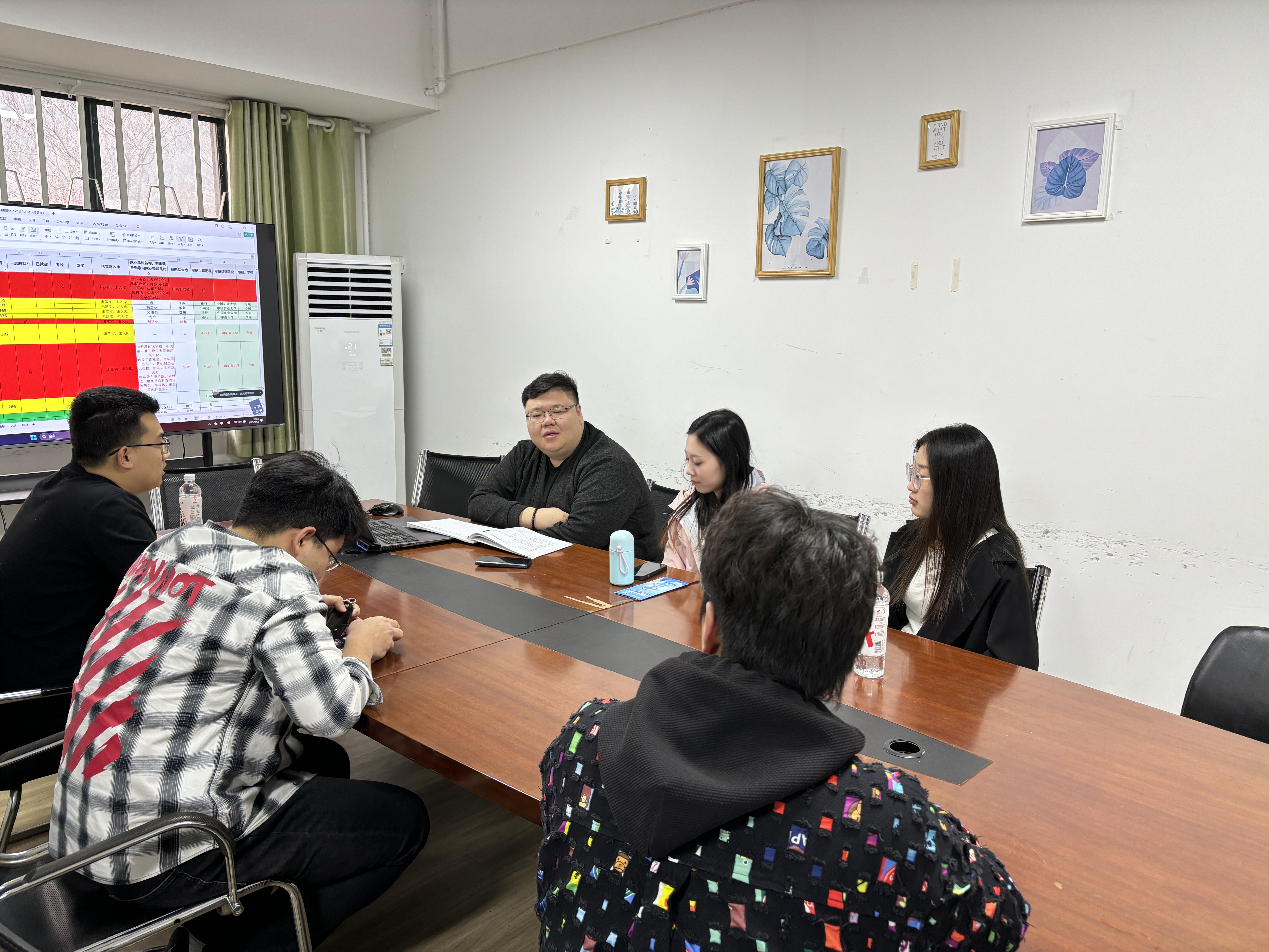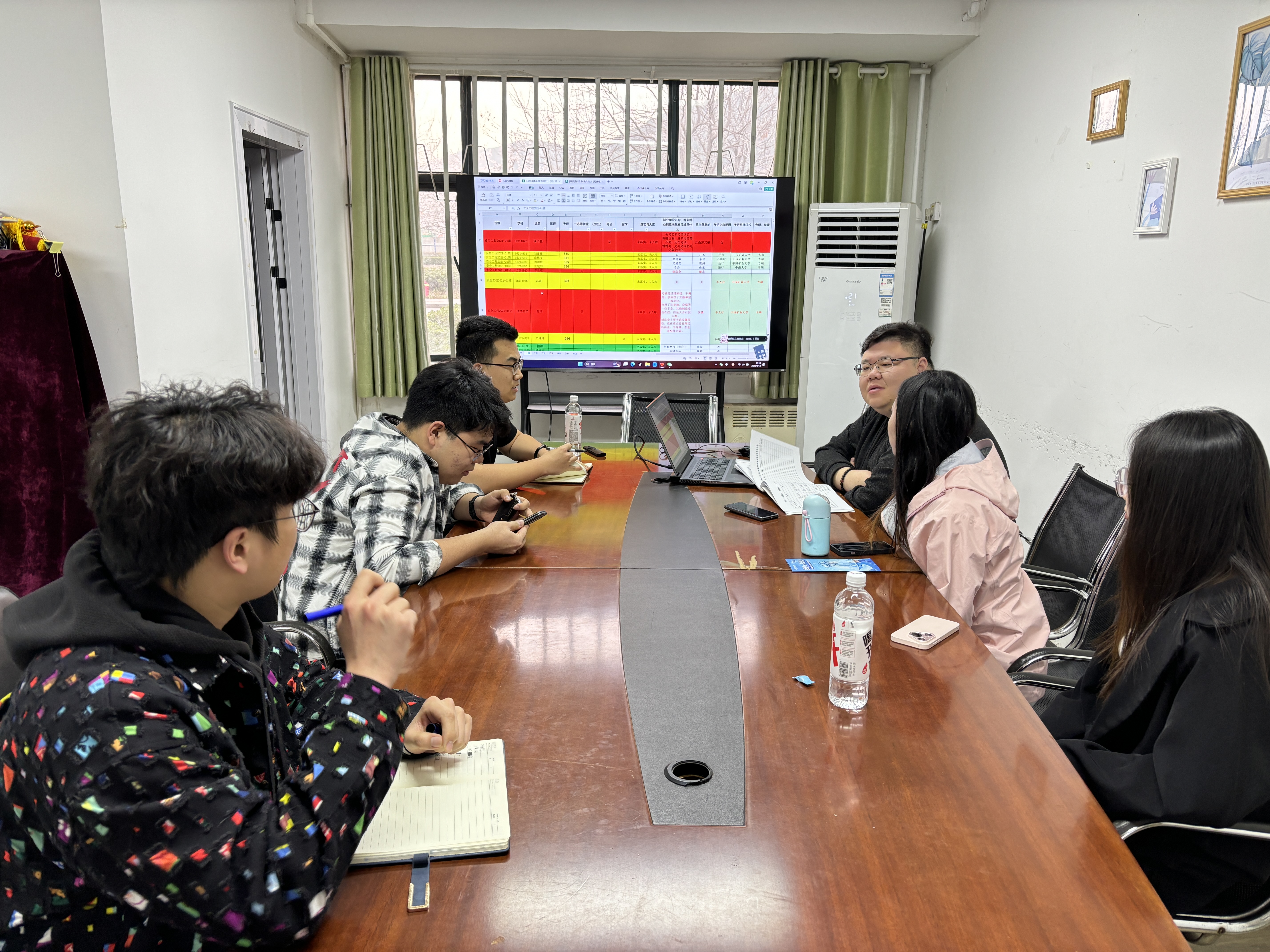 于梅三一楼办公室开展春招工作动员会,学工办主任、21级辅导员刘世通为本次会议主讲人,2021级辅导员助理参与其中。