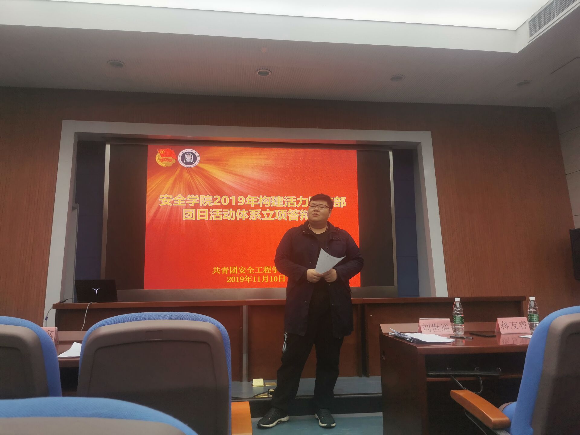 2019年11月10日下午,安全学院于矿业科学中心A200举办了2019年构建活力团支部·团日活动立项答辩会,团委书记刘世通,辅导员排日代姆、吕鑫出席活动并担任现场评审,学院团委学生会主席团成员及2018级、2019级各班团支书参与现场答辩。