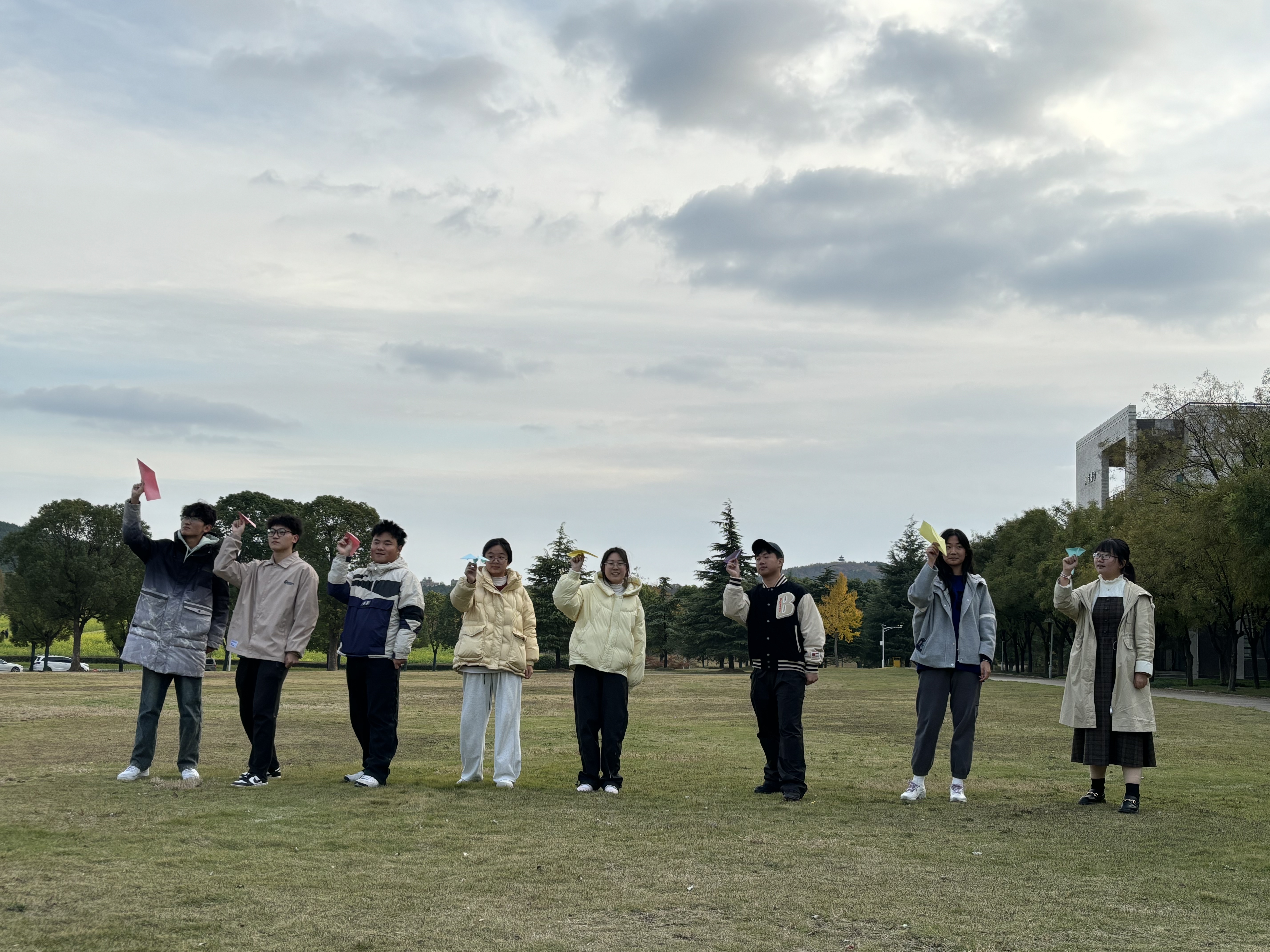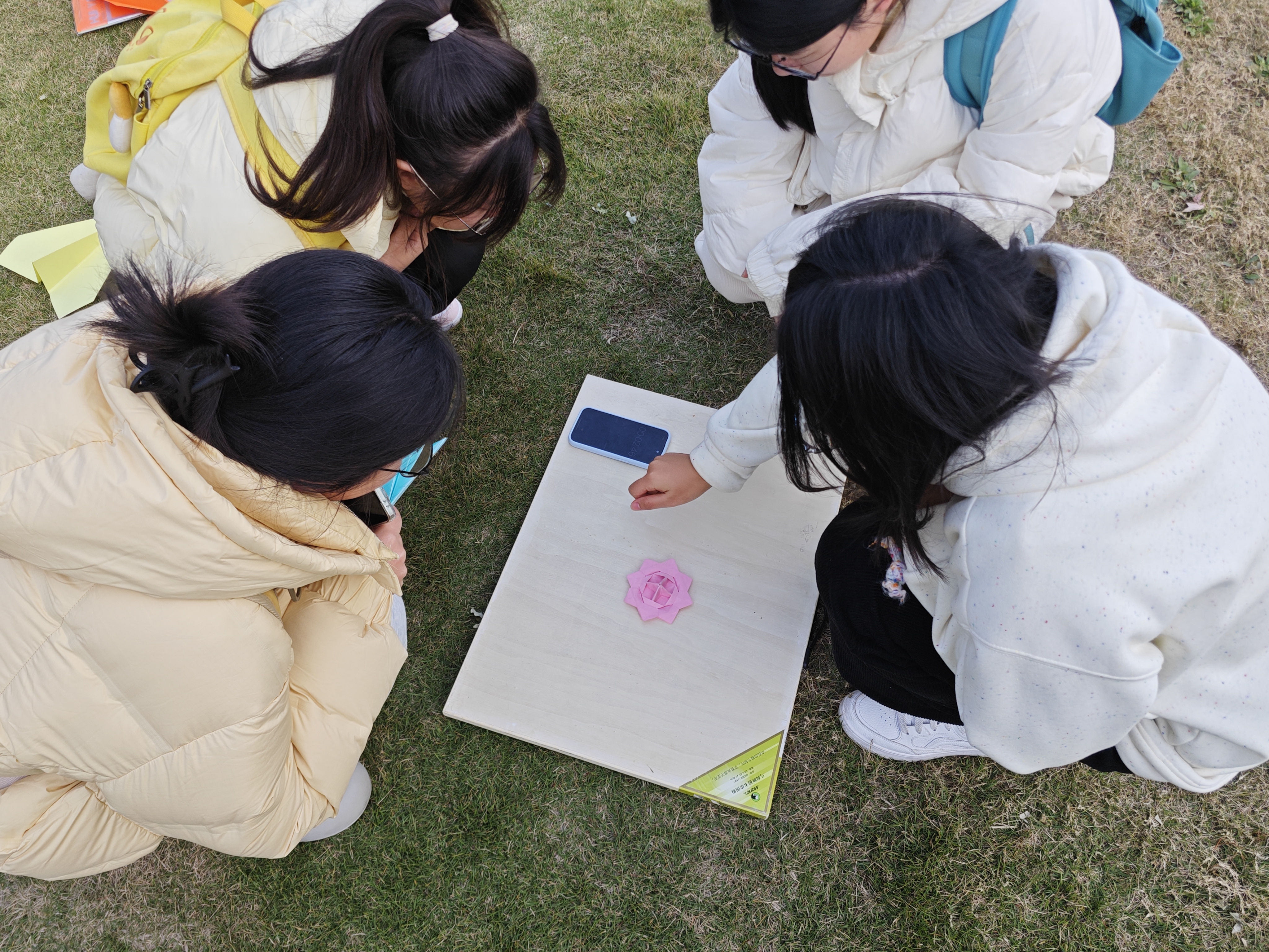 在活动中,参与者充分发挥自身的想象力与创造力,设计出了独一无二的作品,他们自己动手折叠、粘贴和调整的过程,不仅提高了动手能力和手眼协调性,更让他们在面对挑战和失败时学会了坚持与调整。在比赛前的交流中,大家积极分享想法和感受,开拓了不同的视角。比赛开始后,大家在大草坪上共同放飞了自己的纸飞机,五颜六色的飞机在空中自由翱翔,大家也在地上旋转自己折叠的纸陀螺,遇到旋转时间久的陀螺大家还一起为其喝彩。活动还巧妙地穿插讲解了折纸陀螺和纸飞机背后的科学原理,如重心、空气动力学等。让参与者在欢乐中收获了实用的科学知识。成员们在活动中共同参与,携手完成任务,增进了彼此之间的情感交流。