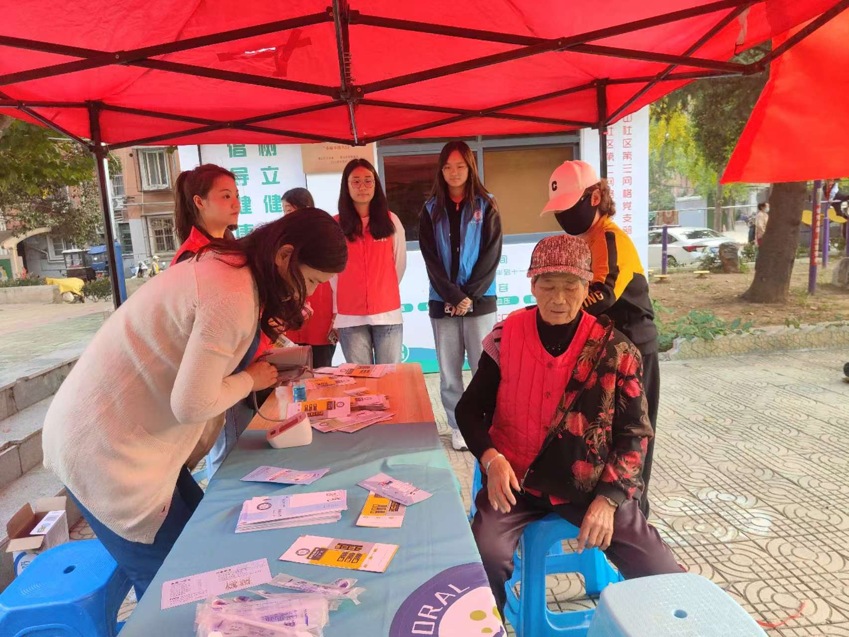 团委、泰山街道办事处、泰山社区、博爱宝岛口腔开展口腔义诊活动。