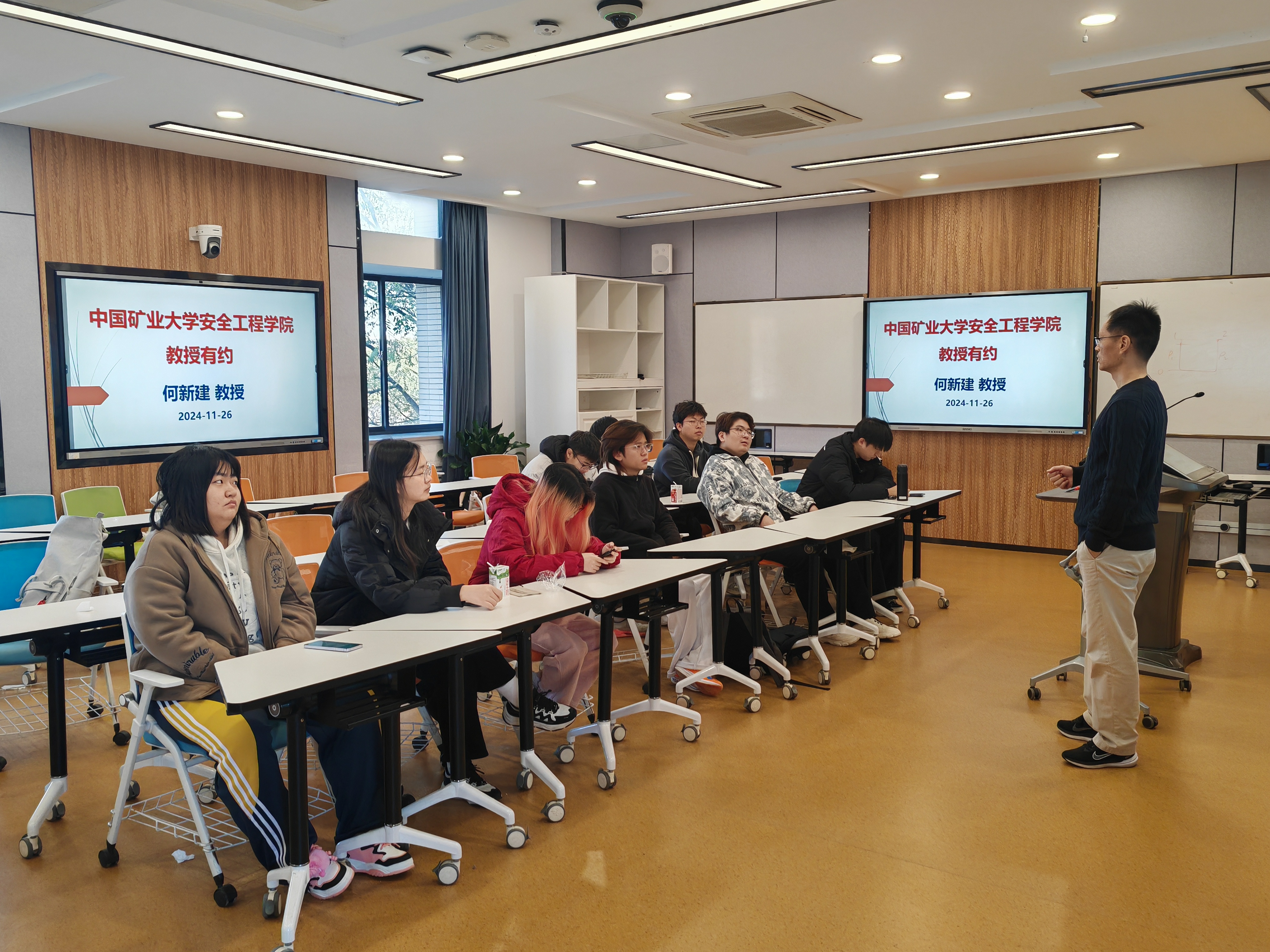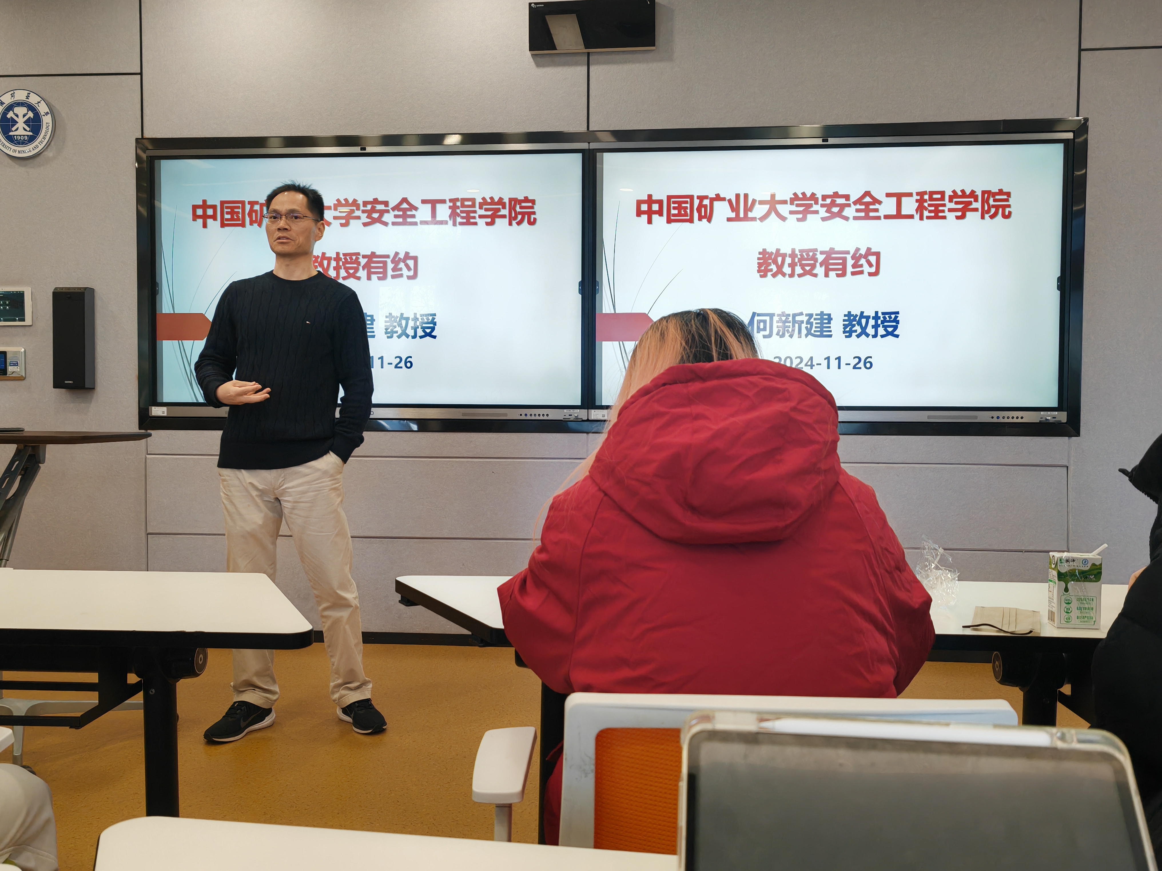 于博五A201开展“教授有约”活动,何新建教授受邀主讲,2023级职业卫生工程1班全体同学参加本次活动。