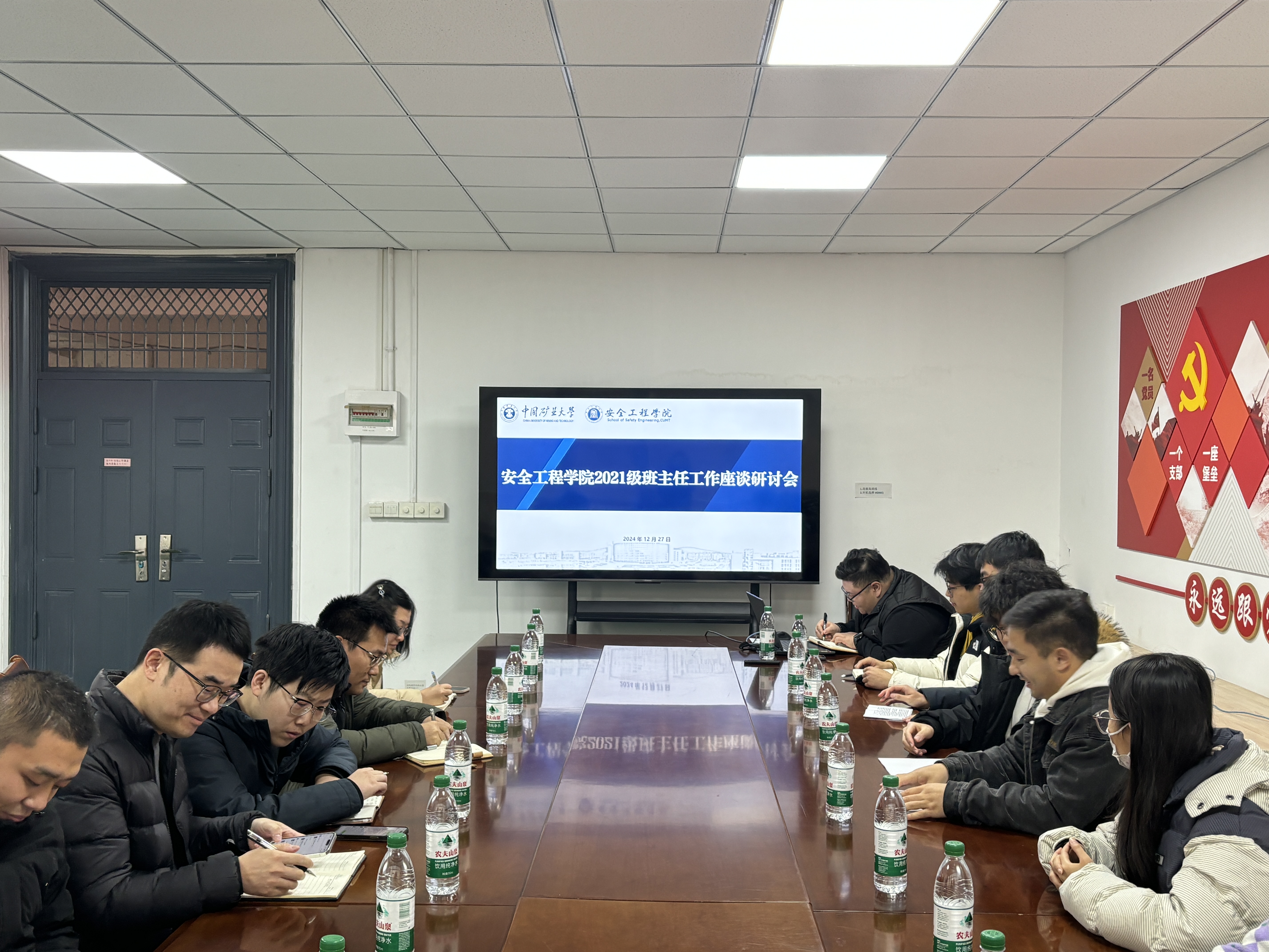 为进一步加强学院班主任队伍建设,充分发挥班主任的重要作用,12月27日下午16时,学院于矿科党员活动之家举办了2021级班主任工作座谈研讨会,学院党委副书记邵波、学工办主任、2021级专职辅导员刘世通、2021级各班行政班主任以及各班学生代表参加本次座谈会。座谈会由院党委副书记邵波主持。