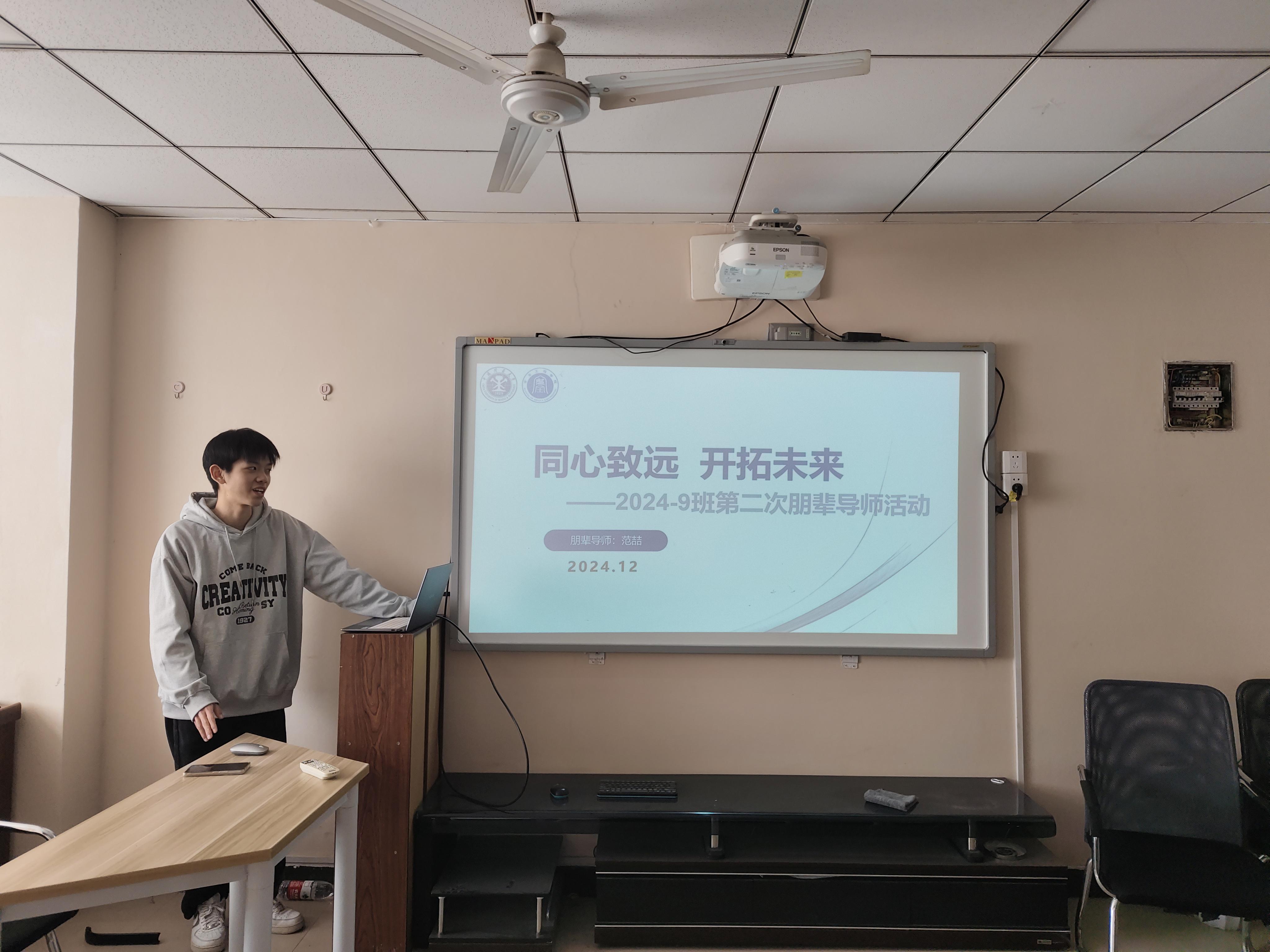 学生党员工作站于力行轩开展主题为“同心致远 开拓未来”的青年说,青年行”活动,范喆同学受邀主讲,2024级9班全体同学参加此活动。
