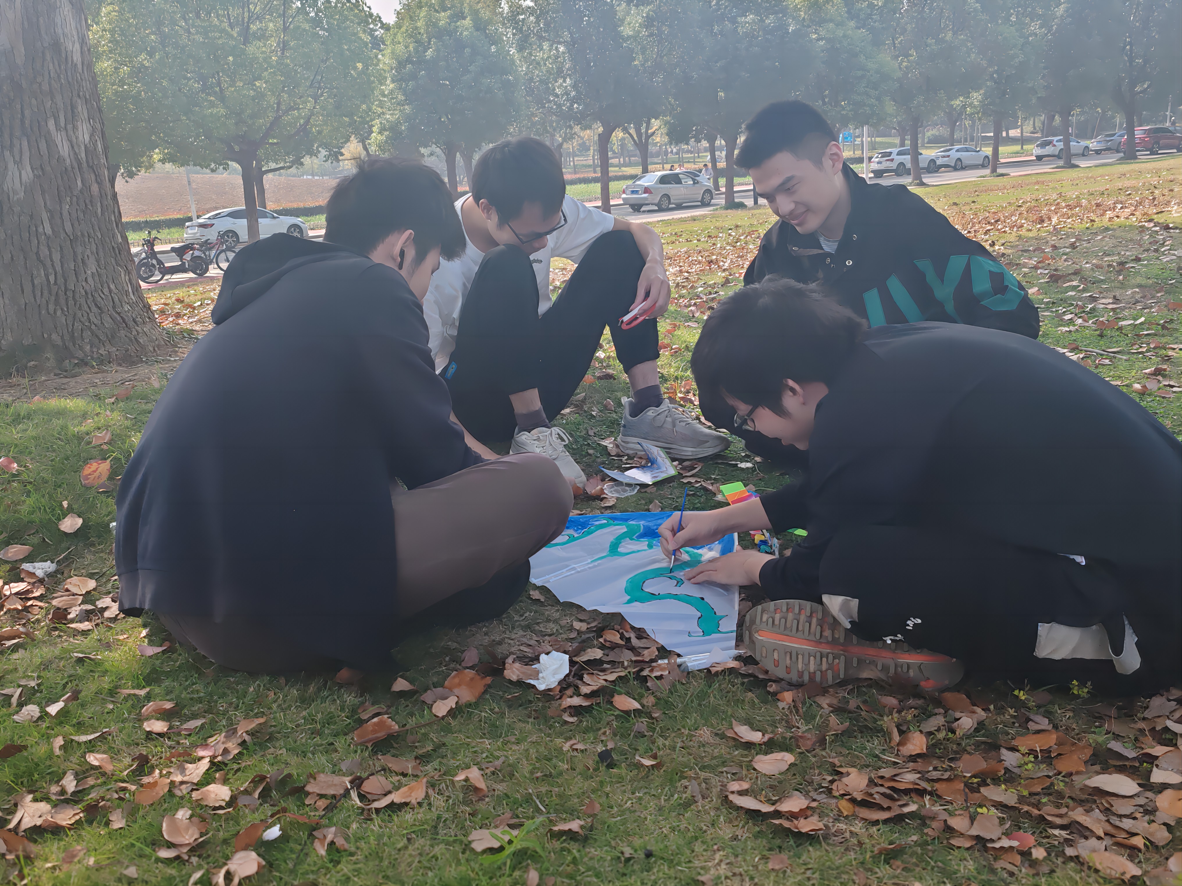 活动伊始,同学们分组进行风筝绘制。各小组成员发挥特长,分工合作,如火如荼地开始风筝的制作。同学们天马行空地构思创作主题,精心地挑选色彩,细腻地绘上图案,一只只精美的风筝很快被创作出来。随后,同学们将制作好的风筝向评委展示,由评委进行评定。接着,同学们陆续放飞手中的风筝,评委根据风筝的创意度、美观度、在空中的飞行时间以及是否稳定灵动等方面进行综合打分,最终评选出优秀作品。