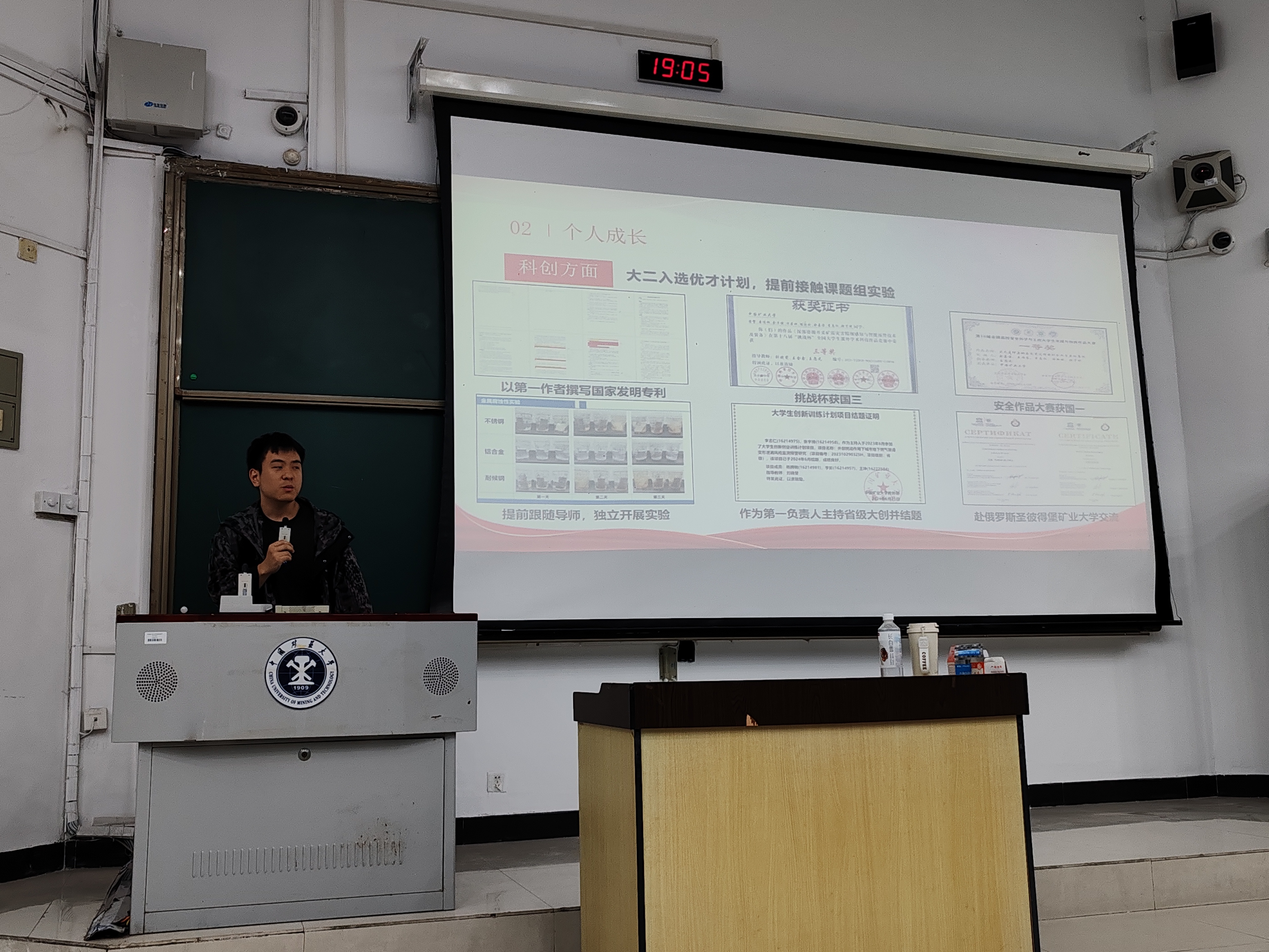 的李志仁同学和计算机科学与技术学院的杜重阳同学,分享他们在科技创新领域的宝贵经验。李志仁同学围绕大学生创新创业训练计划展开分享,从基本信息、准备流程到个人心得体会,详细介绍了训练计划的各个环节,为同学们清晰勾勒出参与该计划的路径。杜重阳同学则聚焦计算算法,从竞赛赛制、竞赛选择到参赛建议及坚定决心的经验,全方位为同学们答疑解惑,助力大家在竞赛中脱颖而出。