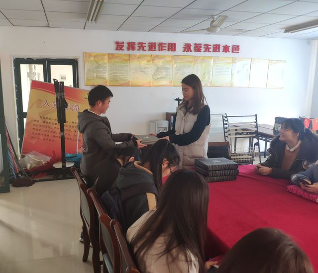 本次活动分为两个部分发放保暖内衣和了解18级建档生目前的生活学习状况。下午一点座谈会正式开始,辅导员吕鑫先耐心地将衣服挨个送到同学手上,然后她询问了同学们最近的生活与学习状况,聆听他们诉说自己内心的感受,解答他们日常生活与学习中的困惑。最后她勉励同学们在大学也要努力学习,不要因为物质上的问题影响到自己的大学生活,学院将一直使他们坚强的后盾,并鼓励同学们要好好学习,争取取得优异的成绩。