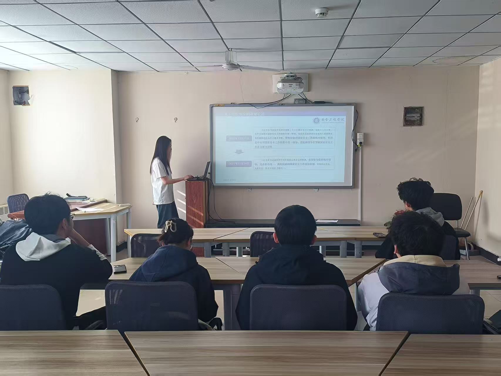 活动伊始,郑言从四个角度阐述安全生产的重要性,她表明:作为一名安全工程专业的学生,我们能深刻体会到安全生产不仅是技术问题,更是关系人民生命财产安全。随后,陈思睿同学讲解了升学、就业不同的选择对应的不同的优缺点,让同学们从自身出发,判断自己的性格以及能力,选择最适合自己的一条道路。最后,他还给了同学们一些关于面试的建议,让同学在面试前做好充足的准备,不要紧张,自信冷静。