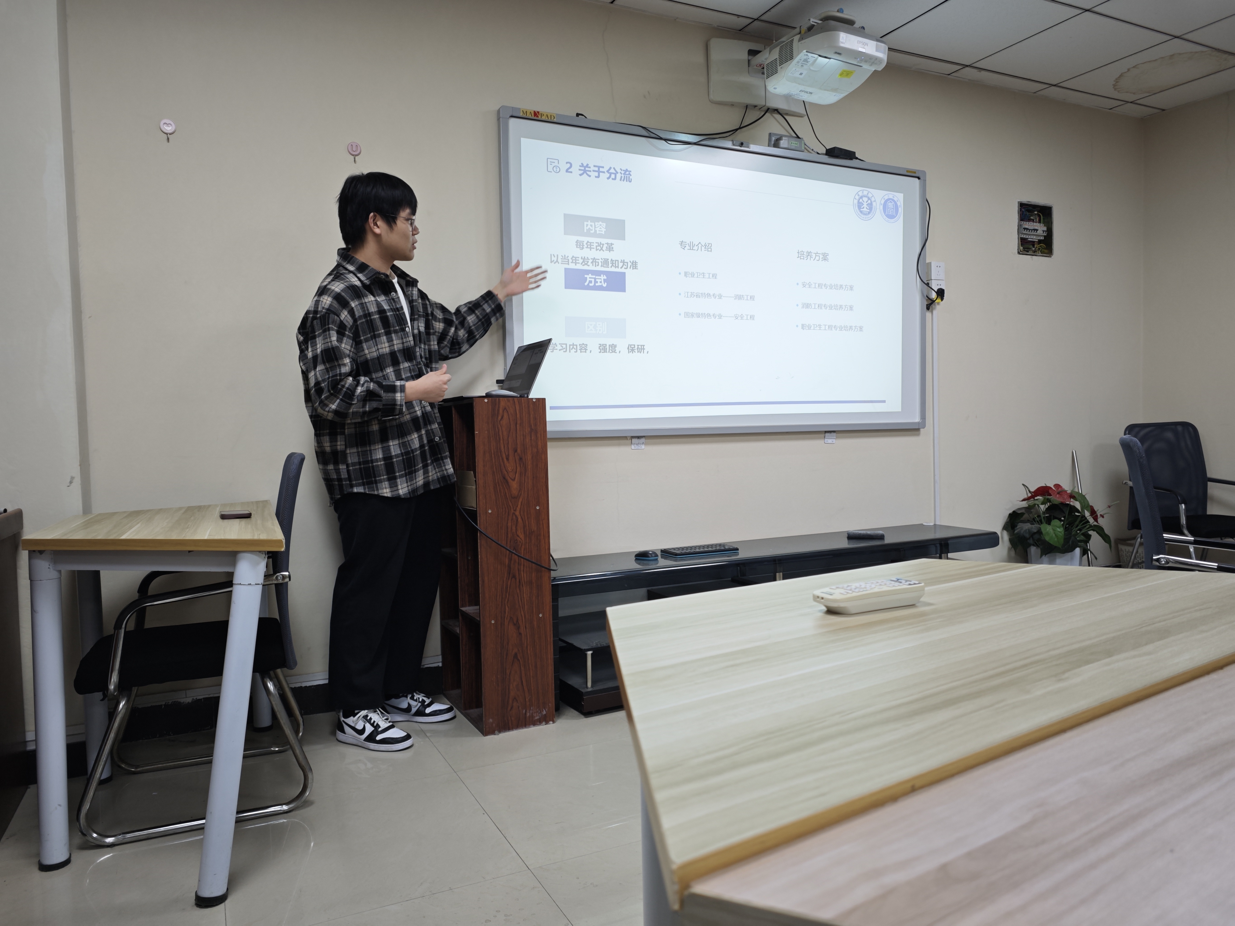 活动伊始,王坤详细地为同学们解答关于学习、分流以及日常生活中的问题,帮助大家解决现阶段的困扰。随后,他结合个人经历,讲解分流各个专业的区别,并对保研的要求作了细致的解释。同时,他强调了高数和其它基础科目在大学学习中的重要性,并分享了自己关于各个学科的学习心得,帮助同学们提高学习成绩。此外,在科研竞赛方面,他分享了自己的经历,并为同学们指引出了学习方向。活动最后,王坤积极地与班级同学互动,细心解答了学习生活上的问题。