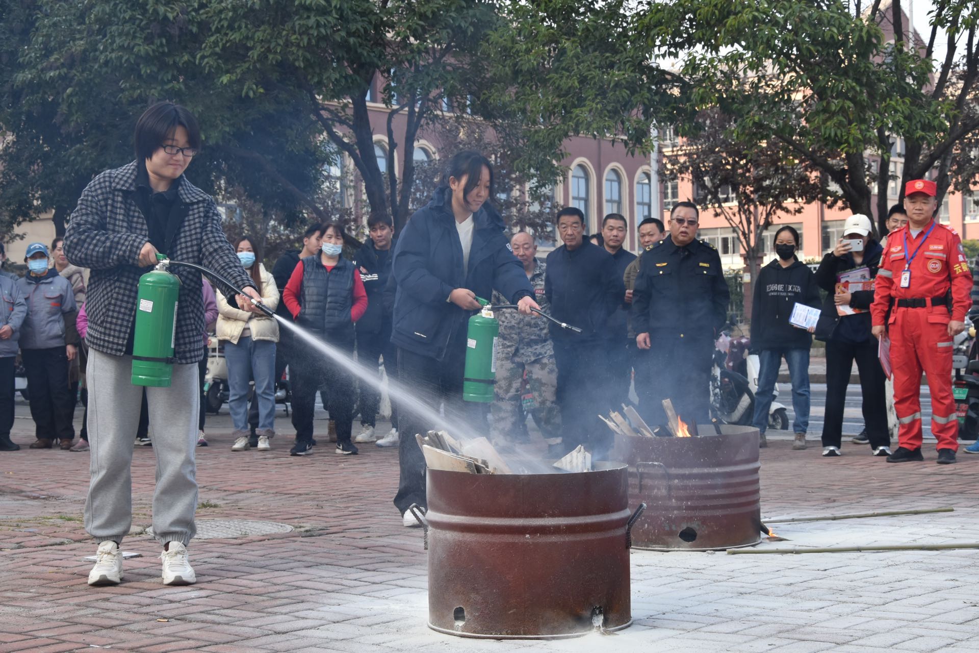 志愿者讲述了消防安全的相关知识,包括如何降低家庭火灾隐患、各种不同种类的灭火器用途、使用方法及注意事项、灭火毯的使用等等。随后,志愿者带领市民学习消防实操技能,分别使用干粉和泡沫灭火器进行实操,进一步了解了两者灭火器的不同适用火灾类型和使用区别,学会了灭火器的具体操作方式。实操结束后,志愿者向社区居民、过路行人和周边商铺发放不同种类的宣传单,其中包括校园火灾安全、燃气安全、突遇火灾应该如何尽快自保等内容,对消防安全知识进行进一步宣传普及。最后,负责人再次向活动参与人强调消防安全的重要性,并对本次活动作总结。