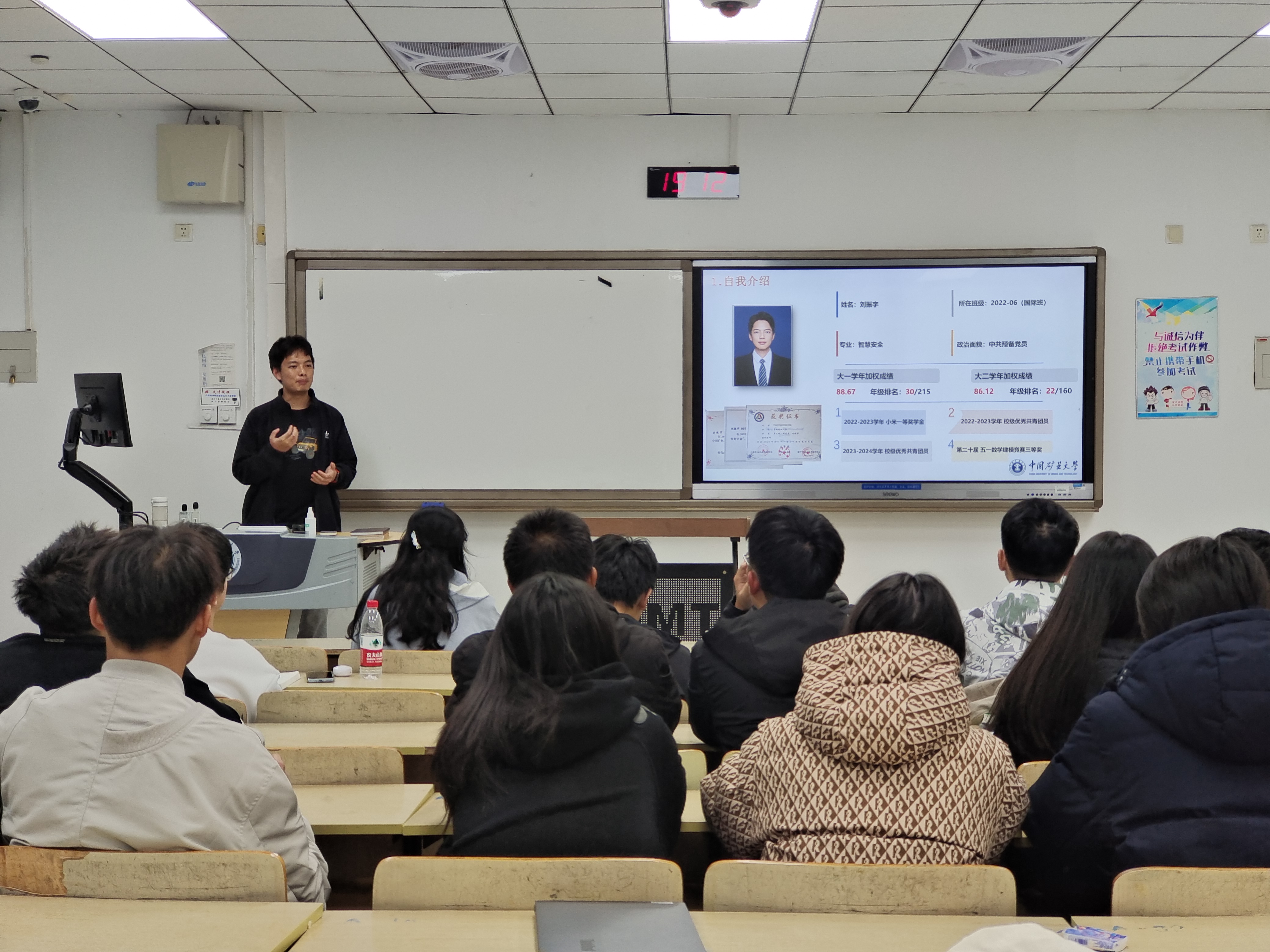 讲座伊始,刘振宇同学简短地进行了自我介绍,随后对安全科学与工程学科的专业分流、学科评估、专业优势、课程设置、学习资源以及未来研究的领域和就业方向等方面进行了全面细致的讲解,增强了同学们的专业认同感。同时,他还强调要提高对高等数学、大学物理等基础学科的重视。接着,刘振宇耐心细致地回答了同学们关于综测计算、奖学金评定以及研究生推免政策等方面的问题,为同学们提供了宝贵的指导意见。最后,刘振宇向同学们提出了关于学习和生活社交的短期建议,他鼓励同学们在学习上要全力以赴,努力成为一个品学兼优的人。