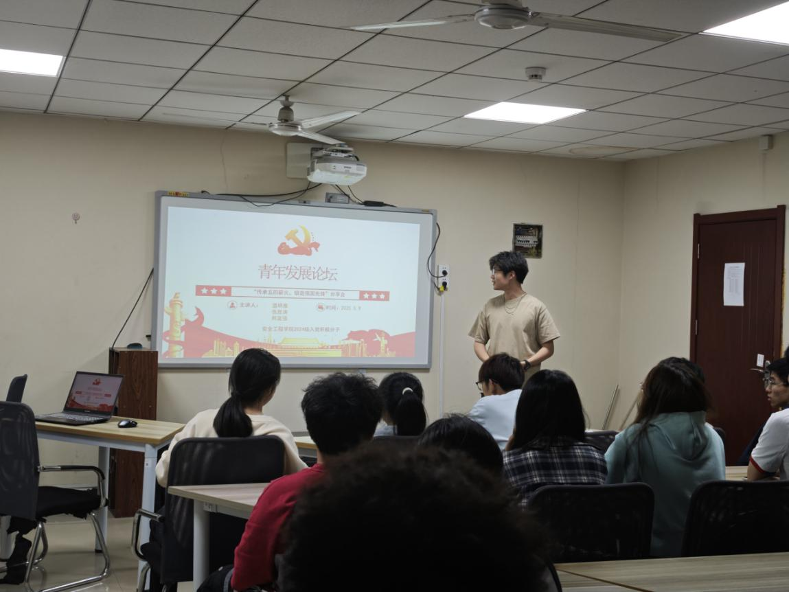 三位主讲人都结合自身学习、实践实习经任主讲历,分享了对五四精神的深刻理解与践行成果,同时进行了现场答疑。张胜涛同学在个人学习方面着重分享,强调个人学习对未来道路的基石作用;韩富强同学则以社会实践为重心,提醒大家不要忽视躬行实践的重要;温明雅同学则致力于科研竞赛的分享,告诉同学们大学的多样性足以支持大家在不同的领域发光发热。会议过程中不乏有同学提问,主讲人也做出针对性回答每位分享者都以生动的故事、真挚的情感,展现了新时代青年传承五四精神、努力奋进的青春风貌。同学们的分享充分展现了新时代青年的责任与担当,希望大家继续以五四精神为指引,在各自领域发光发热,、将个人理想融入国家发展大局,在奋斗中实现人生价值。