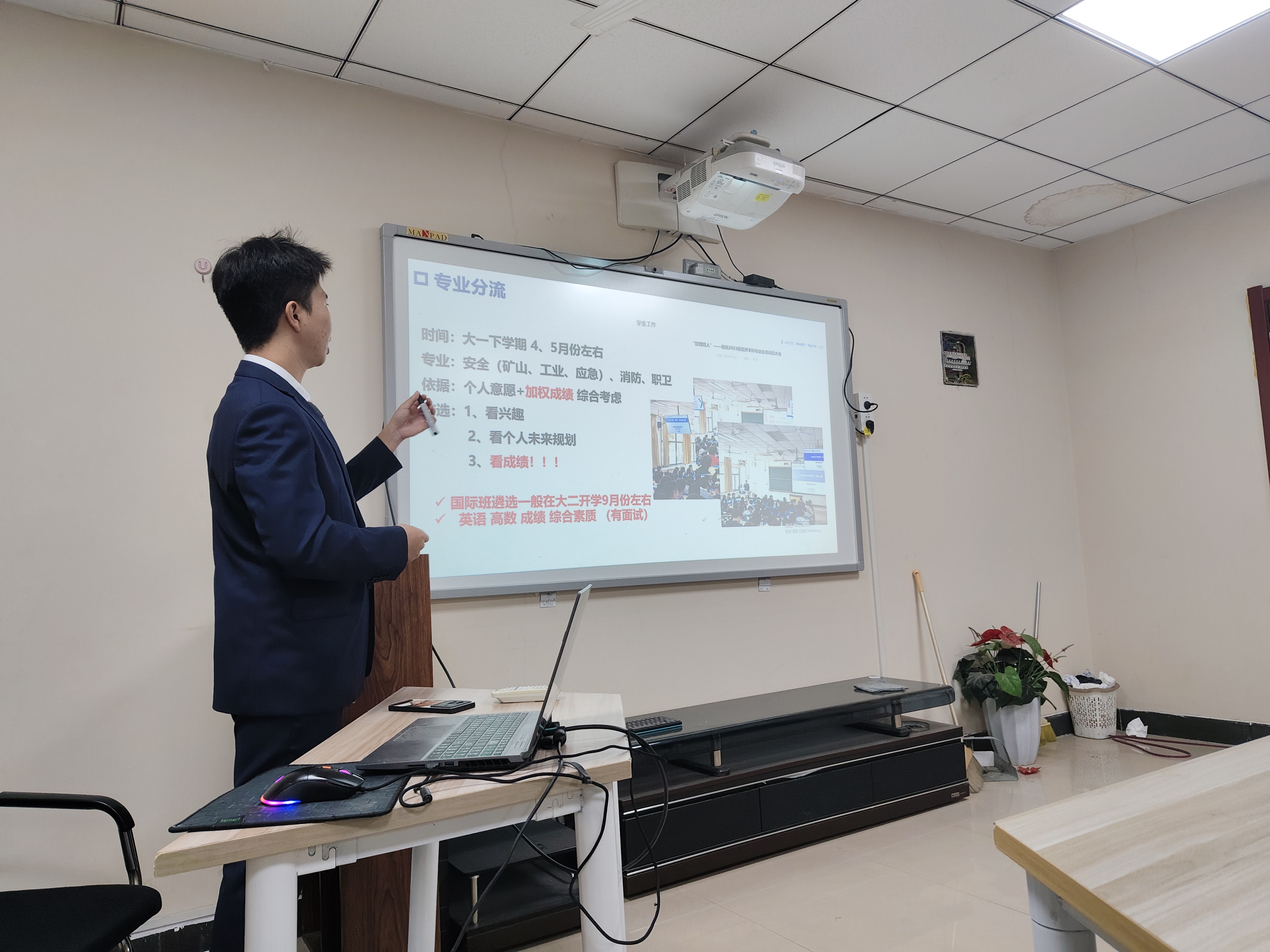 活动伊始,杨卓达细致地回答了同学们在综测、评奖评优等方面的问题,帮助大家解决现阶段的困惑。随后,他结合专业分流以及保研相关条件进行了细致的讲解,在此过程中,他鼓励同学们努力夯实自身的专业基础,提升自己的学习成绩,为未来生涯选择提供更多的选择。此外,在学业之余,他指出大家可以找机会去接触大学生创新创业项目、雅思、挑战杯、互联网+比赛等,为之后自身发展做好准备。最后,杨卓达同学细心解答了大家在各个方面的问题,同学们受益匪浅。