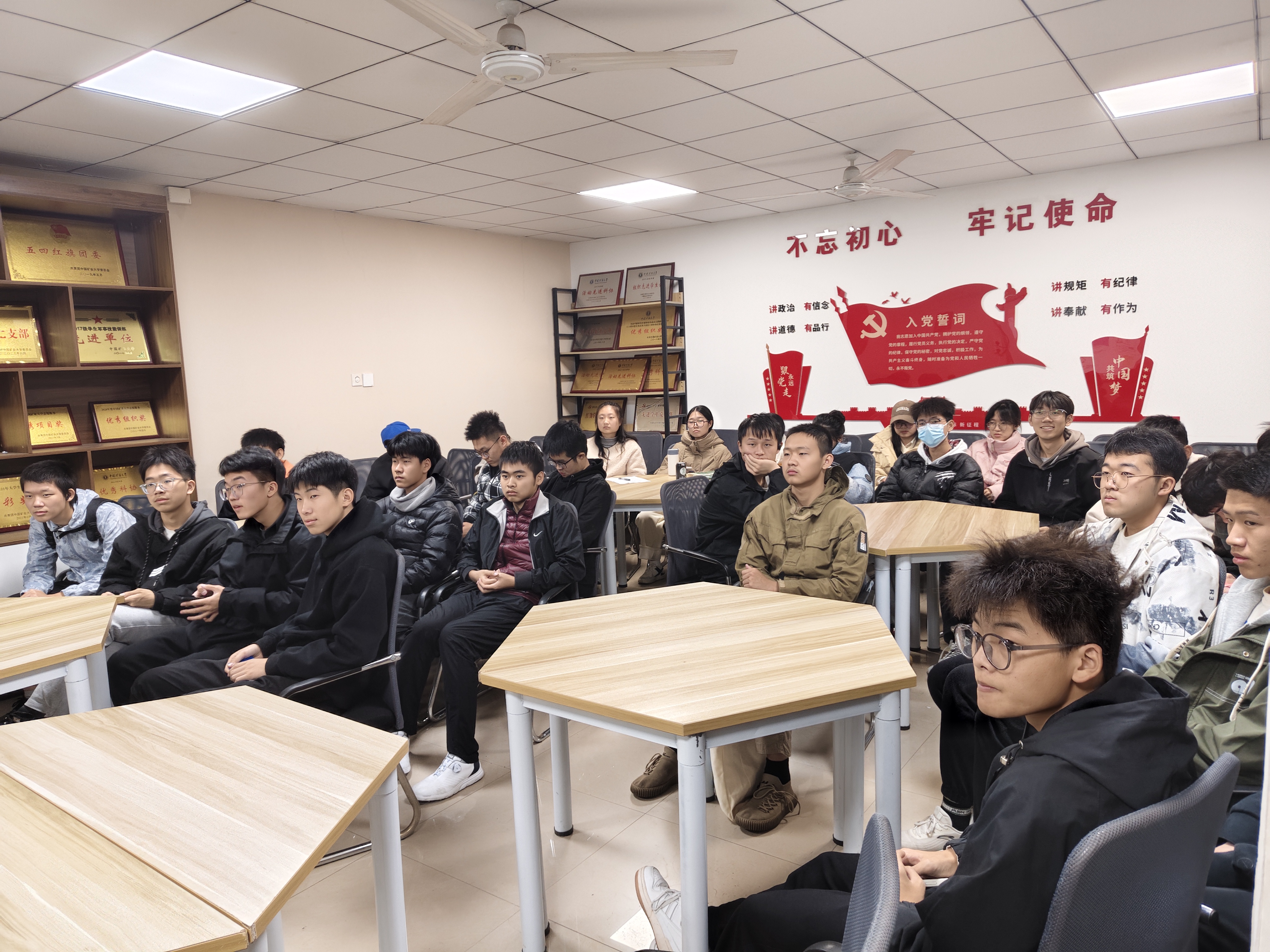 学生党员工作站于力行轩开展主题为“经验传递,共筑成长”主题讲座,杨卓达同学受邀主讲,2024级4班全体成员参与。