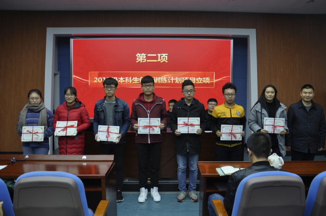 于基伯老师介绍了2018年度学院大学生创新训练项目的立项情况,即由2017级的学术班主任拟定立项题目,每个班学生自愿组队申报,保证每一个同学都参与到创新训练项目中。经评审最终确定立项30项,每项课题由学院资助研究经费1000元。