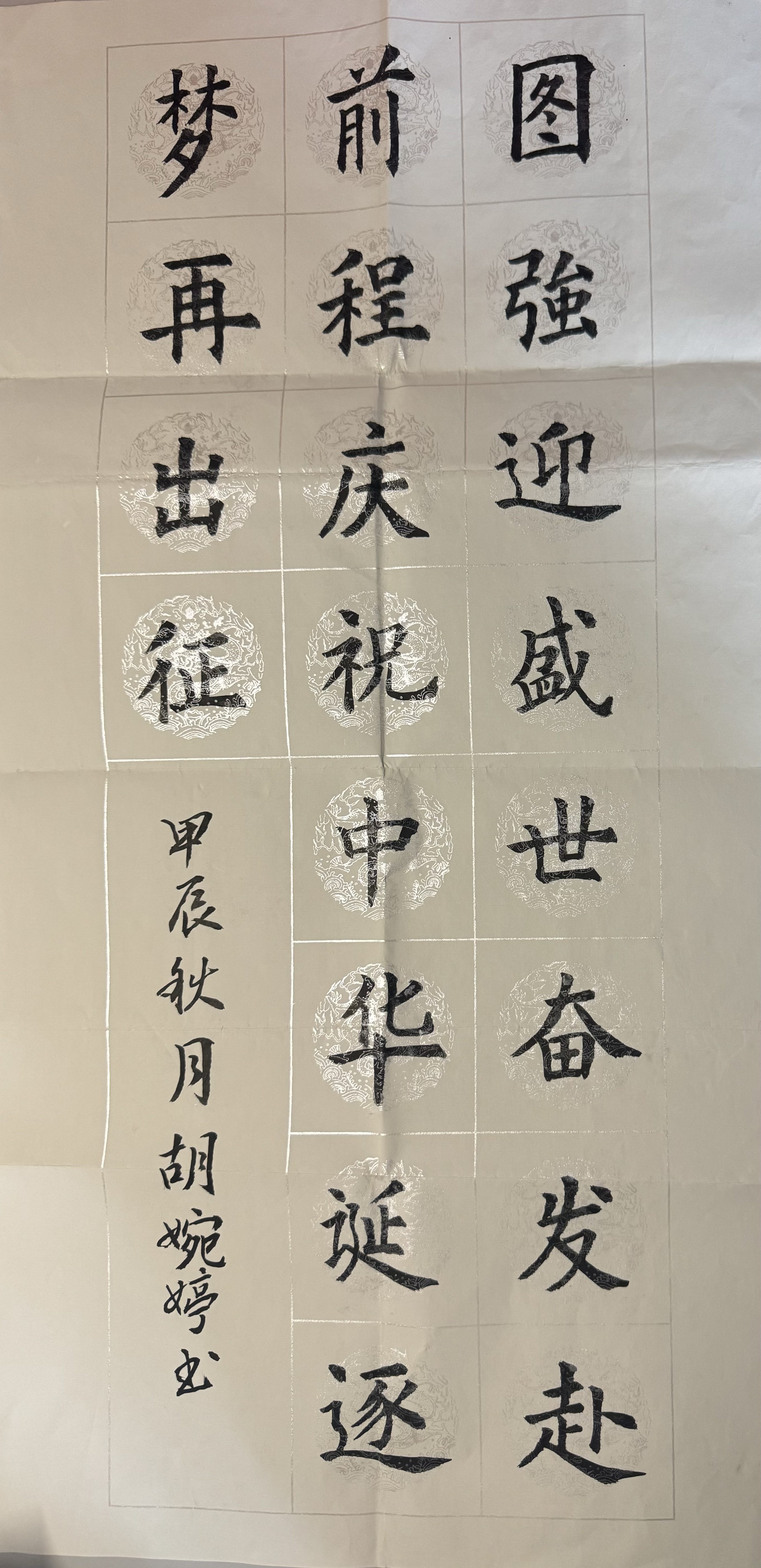 同学们围绕“崇德尚学,共建未来”和“与国同庆”的主题,通过书法和绘画的形式去表达对祖国诞辰真挚的祝福,为祖国的生日献上特别的礼物,大家用刚劲有力的笔触书写对祖国的热爱与祝福,或用淡雅清新的色彩描绘祖国的壮丽山河。此次参赛作品由文艺部组织评委进行评选,并对优秀参赛作品进行公示。
