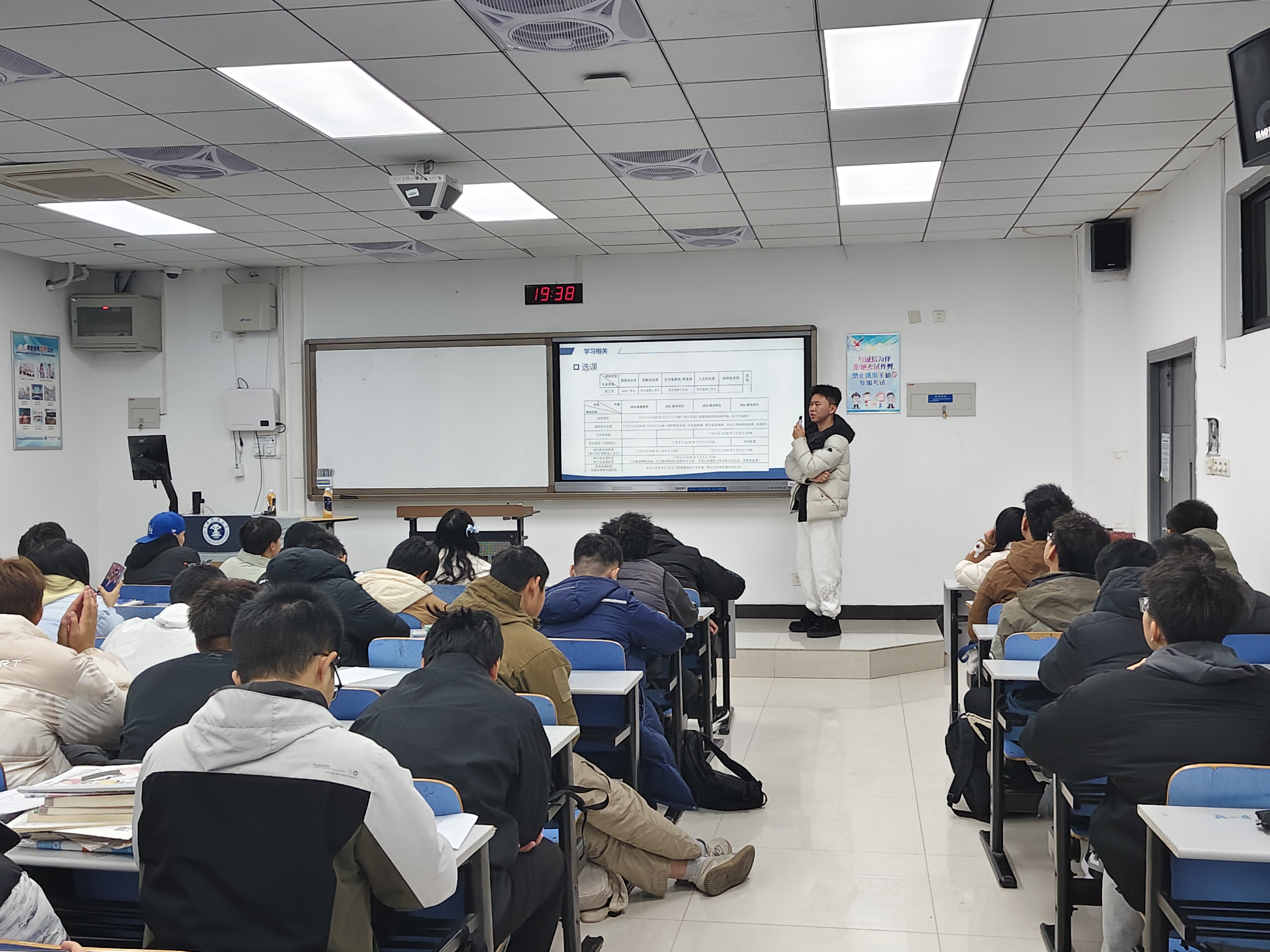 讲座伊始,杨卓达为同学们解答关于大学学习以及生活的疑问,对于英语六级考试,他针对各个题型提供了实用的备考策略与技巧。他还就转专业和参加竞赛等话题展开讲解,并推荐了一些实用的软件工具,他强调掌握软件工具是大学生一项重要的技能,有助于同学们简化工作流程,提高工作效率和培养思维品质。随后,杨卓达同学就选课的政策与相关情况进行了介绍,使得同学们有了新的认知。最后他鼓励同学们养成良好的生活习惯,享受健康美满,丰富多彩的大学生活。