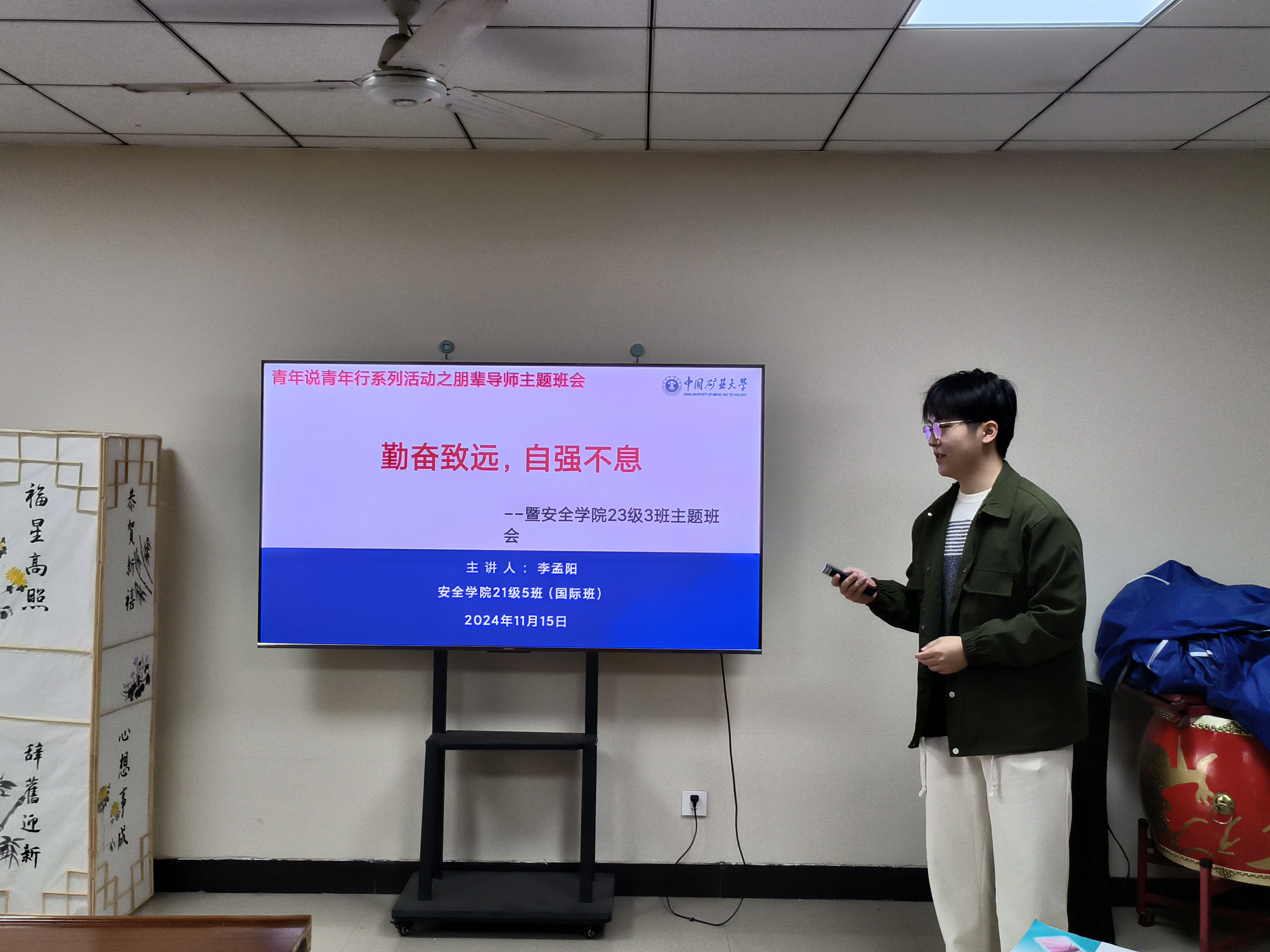 学生党员工作站开展主题为“保研机遇,共创辉煌”的青年说,青年行活动。朋辈导师李孟阳受邀主讲,安全工程2023级3班全体同学参加。