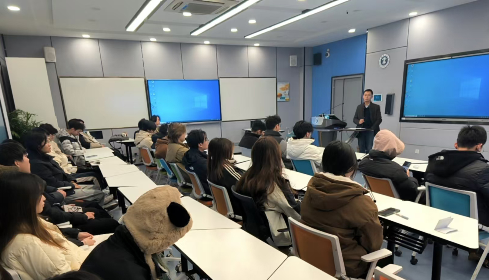 2024年1月8日下午,安全2023-4班在博5A202开展“教授有约”活动,学术班主任李楠作为主讲,全班同学参与了本次活动。