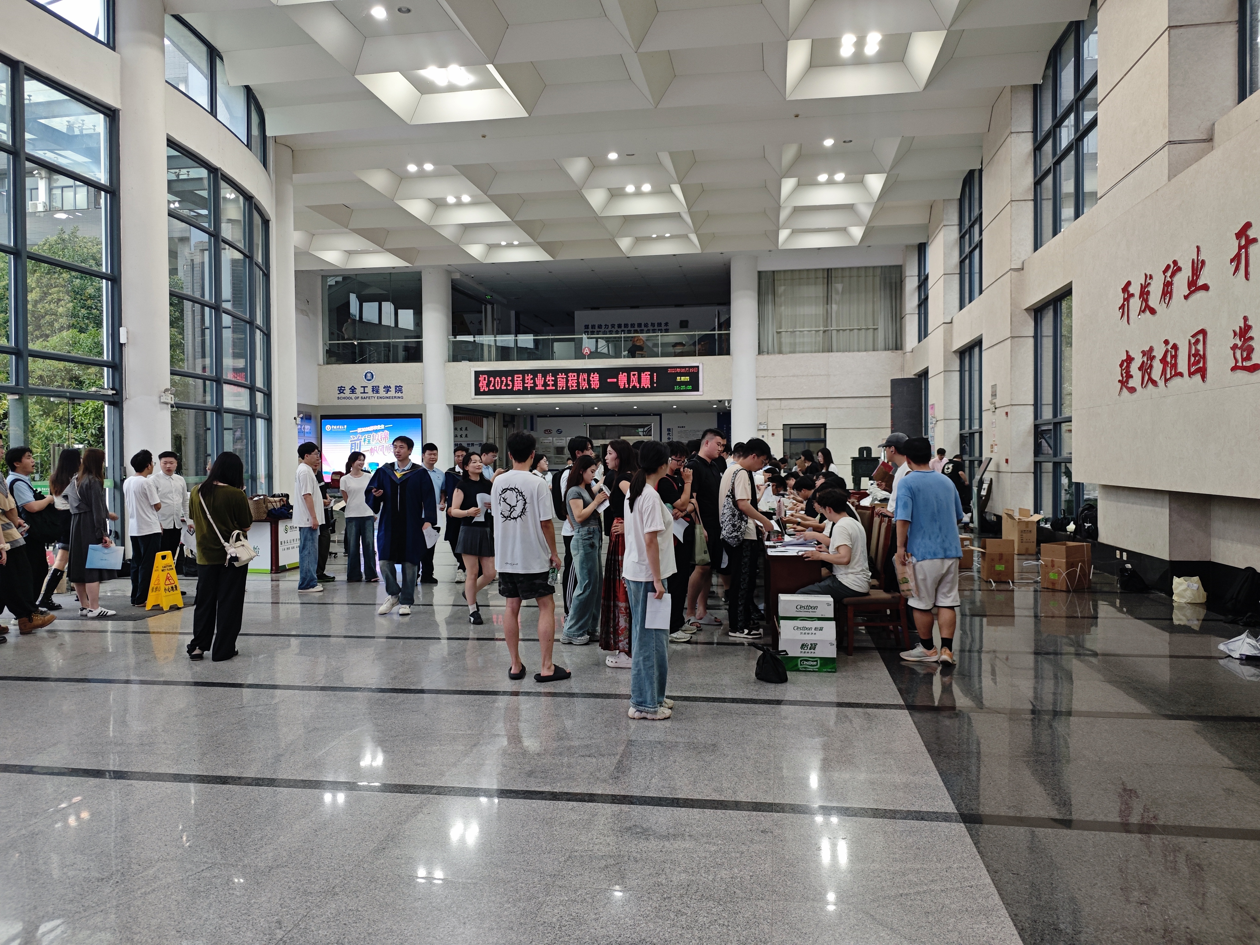 于2025年6月19日上午9时于矿业科学中心一楼大厅开展毕业手续联合办公活动,为毕业生们提供一站式服务。