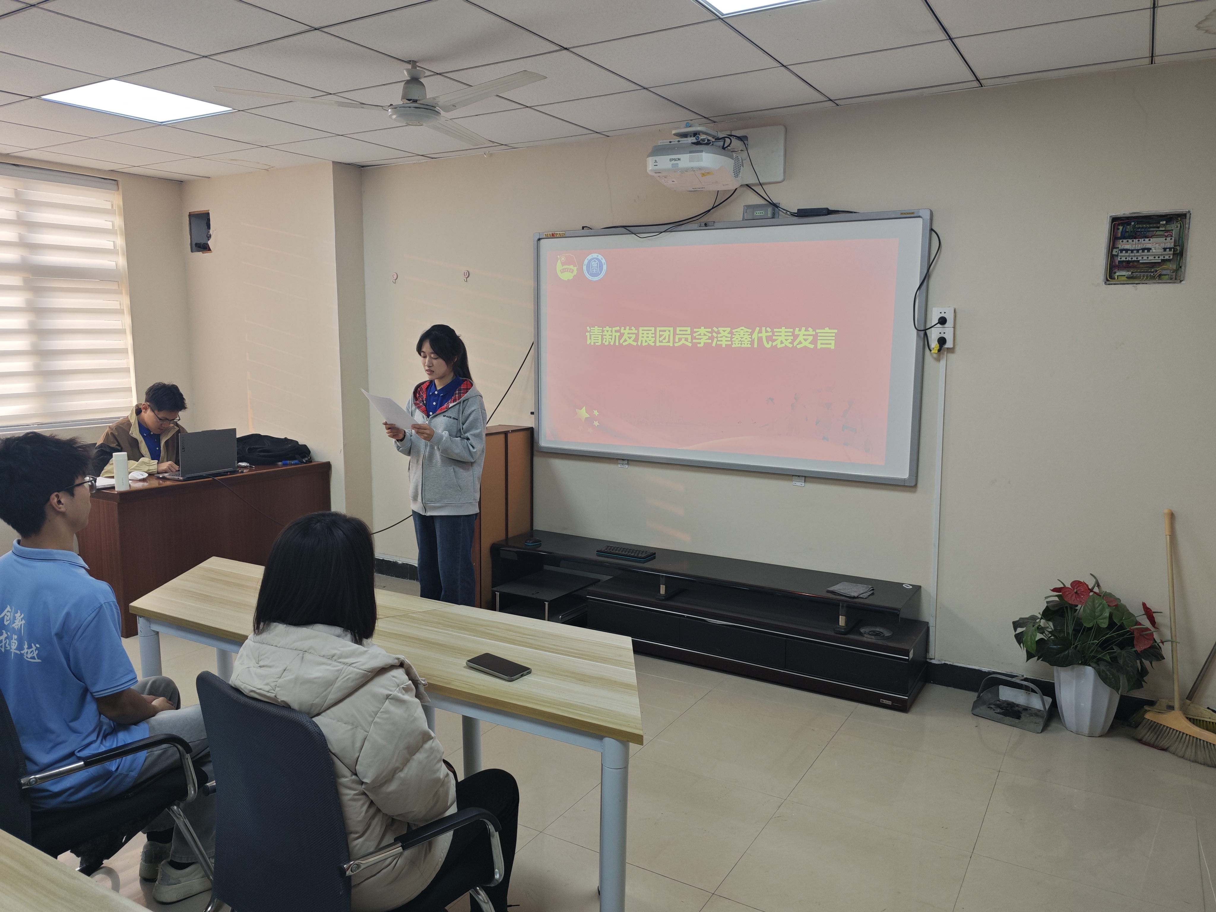 团委于梅三五楼力行轩举行了新发展团员入团仪式。随着全部成员的到场,仪式在庄严的国歌声中拉开帷幕。