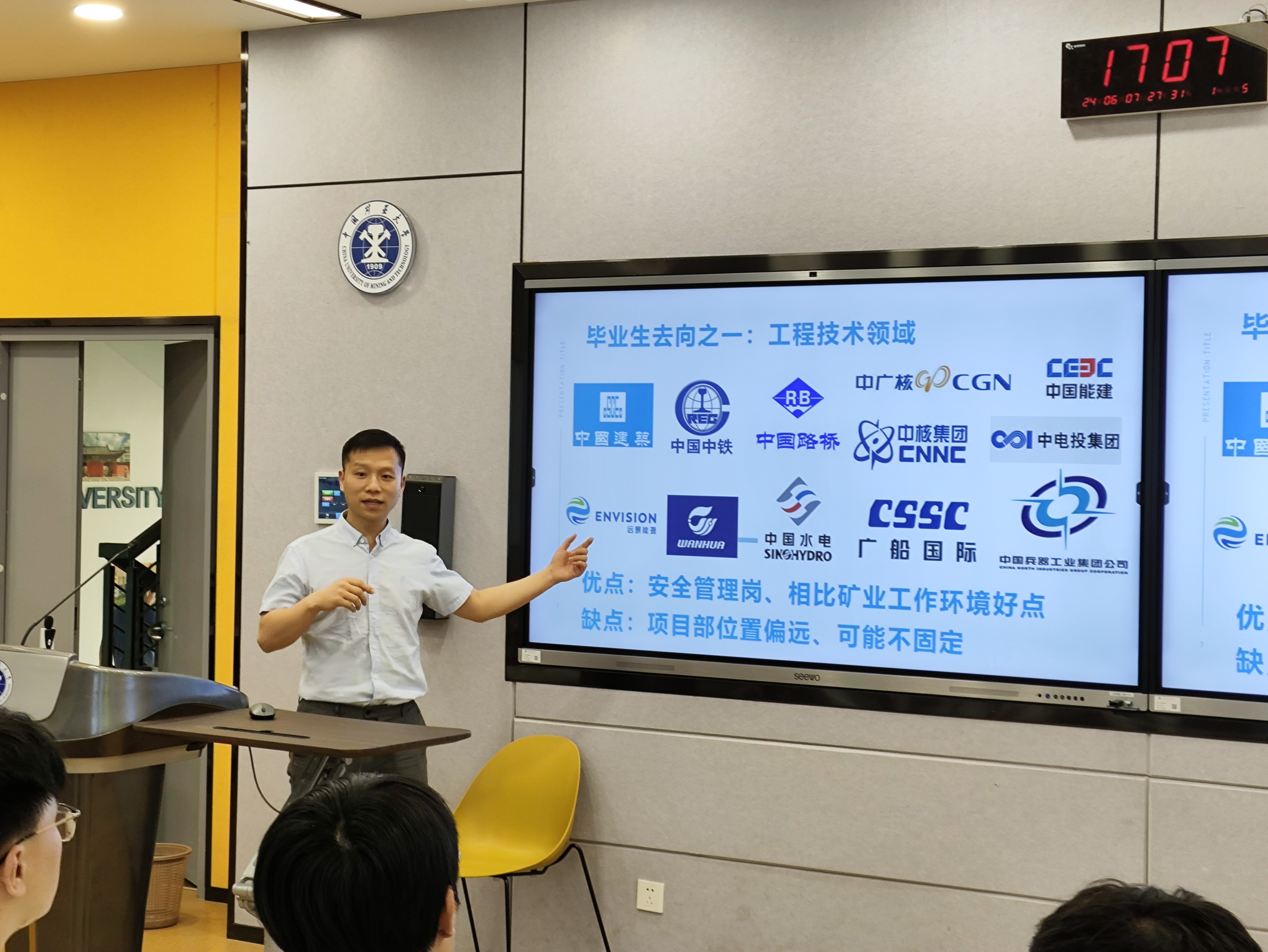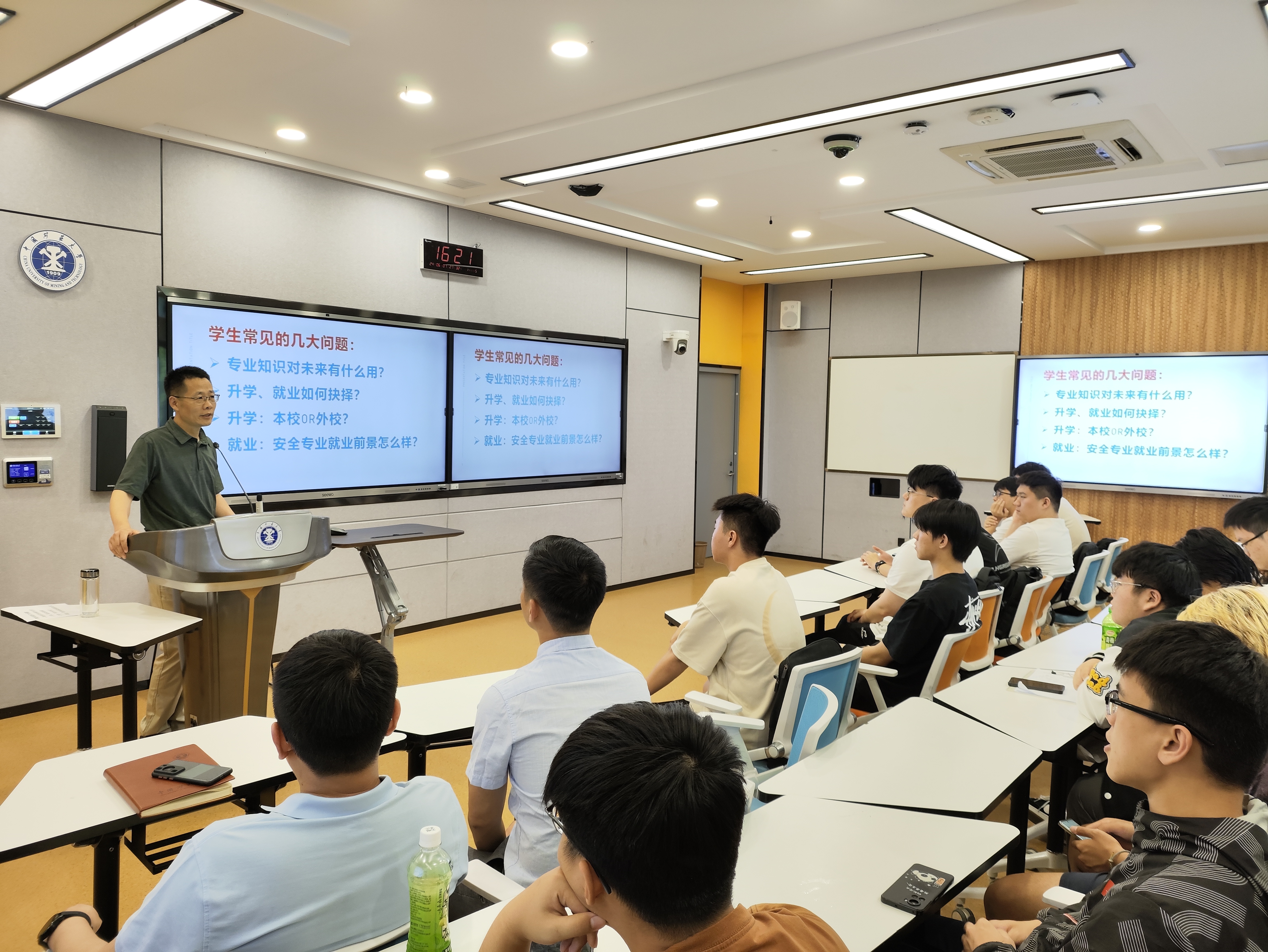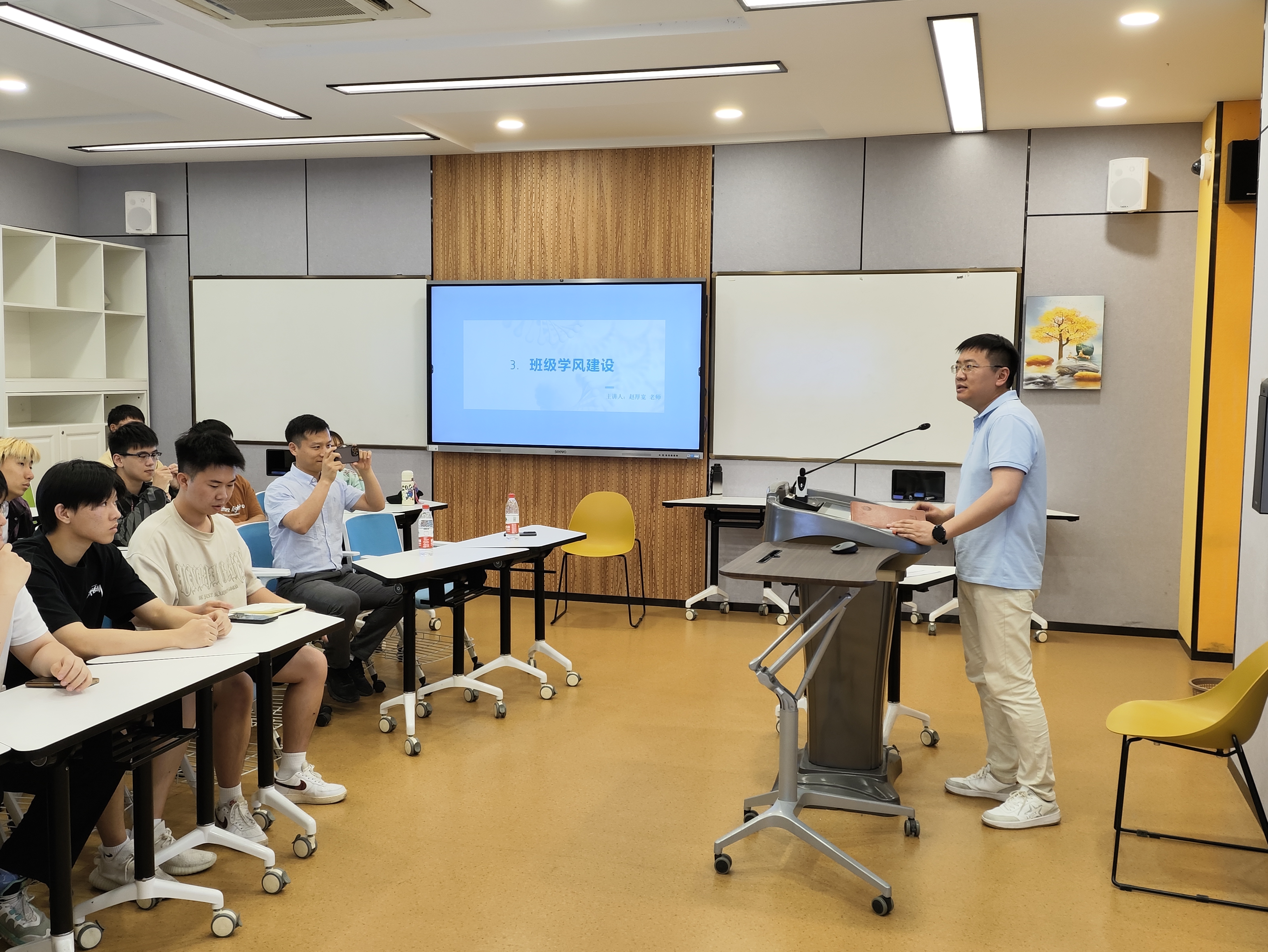 翟成教授就“大学生职业发展规划和校友就业情况”与同学们开展交流讨论,翟教授结合自身求学经历,强调个人发展过程中拥有积极的人生态度的重要性,他指出,最了解自己的人正是我们自己,大学学习生活中应当始终保持积极向上的态度面对人生的各种挑战。翟教授表示,无论是在学术研究还是未来职业发展规划,扎实学好专业知识都是成功的关键。此外,翟院长还鼓励同学们要对未来有清晰的规划和定位,无论选择升学或就业,都要基于个人实际情况和内心真实想法,避免盲目跟风。魏则宁博士以其亲身经历,分享了考研经验和研究生生活的点点滴滴。魏博士表示,研究生阶段不仅是学术知识的深化,更是个人能力和视野的拓展,鼓励同学们珍惜这段宝贵的学习时光。班主任余旭、辅导员赵厚宽详细介绍了班级的班风学风建设情况,强调了良好的学习氛围对于个人成长的积极作用,呼吁同学们提高学习积极性,互相学习,共同营造一个积极向上的学习环境。