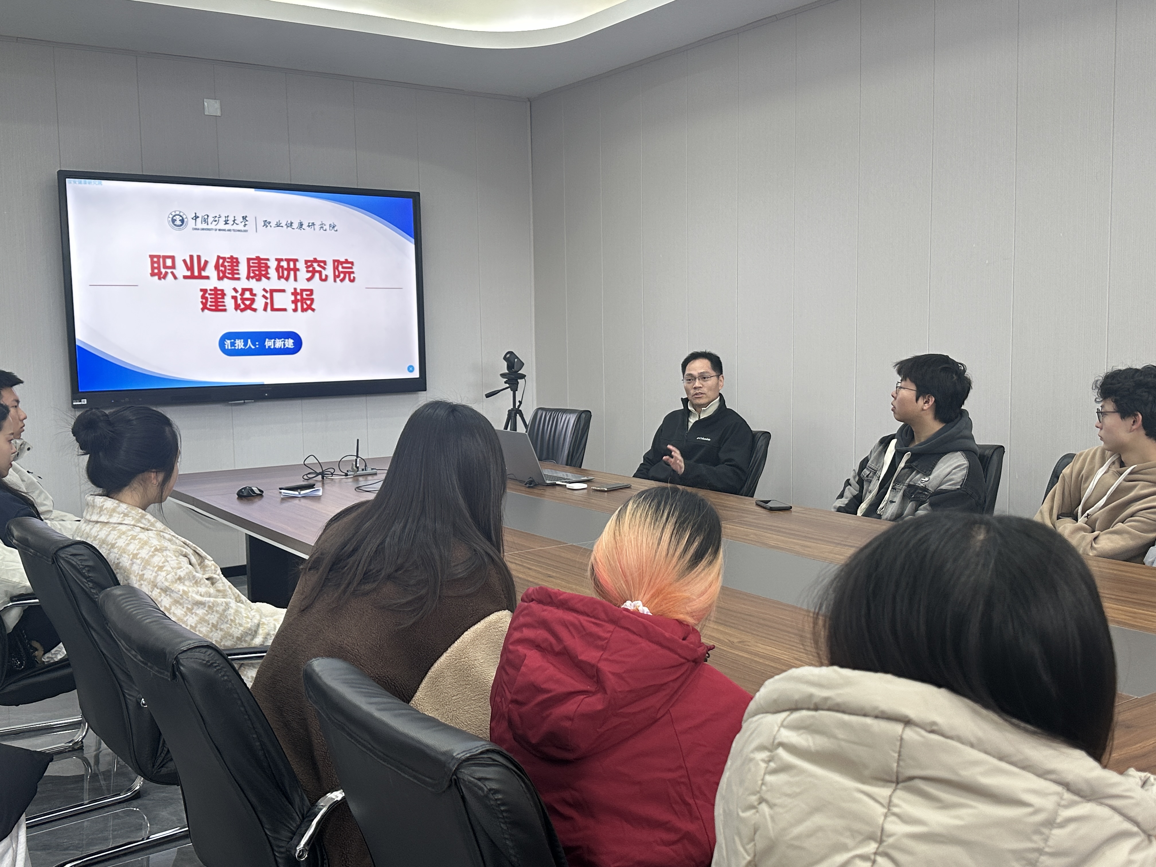 健康卫生研究院该优秀平台的具体建设进行了详细介绍。随后,他以该专业多学科交叉的特点向同学们介绍了优秀的师资团队和人才队伍,并聚焦于组织架构这一方面,向同学们介绍了可视化数值模拟、粉尘精准监测以及呼吸防护技术等前端科研成果。接着,他邀请2022级硕士宋欣译向同学们讲述了自身作为学生在科研方面的经历,她现身说法,鼓励同学们跳出当前专业限制,融合多学科知识进行科研工作。最后,宋欣译同学带领现场同学于健康卫生研究院实验室进行参观,并为大家简单讲解了各仪器的用处,还耐心解答了大家提出的各类疑问。