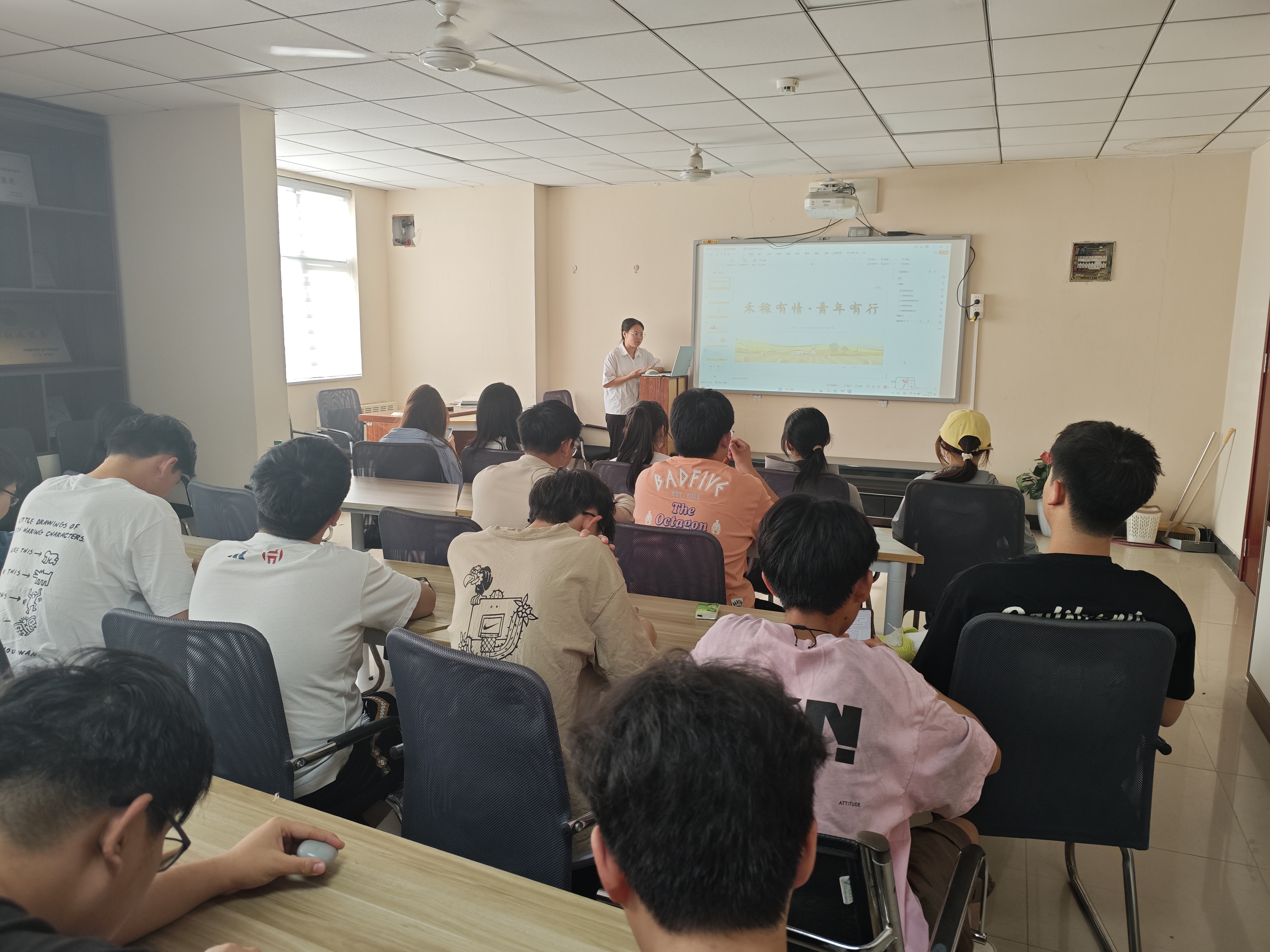 为帮助同学们正确对待专业分流结果,更好投入到学习中去,4月17日下午,学院开展“禾稼有情,青年有行”安心讲堂活动。朋辈导师郑嫣然受邀主讲,2024级7班全体同学参加本次活动。