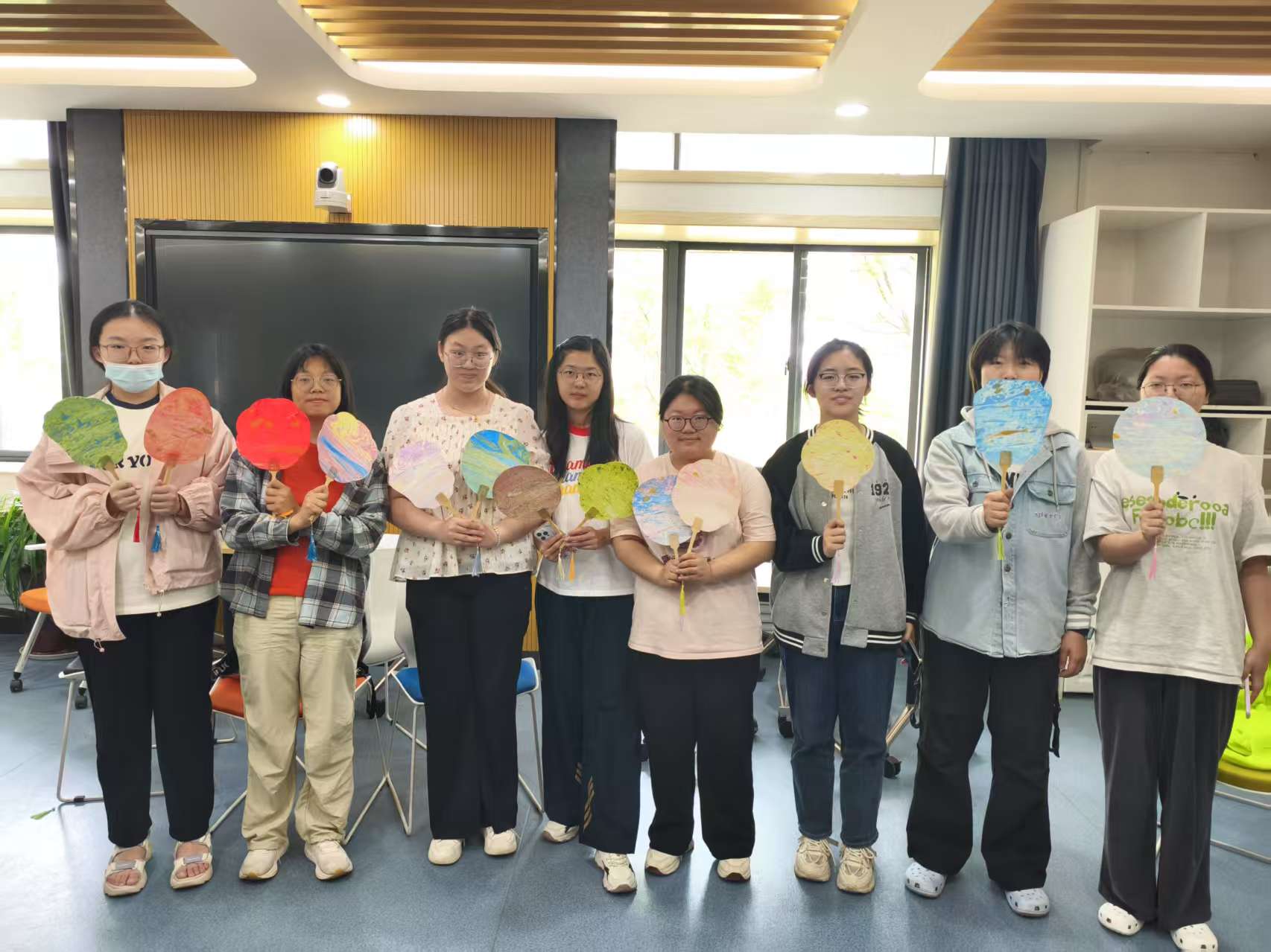活动当天,现场气氛热烈。在教学环节,工作人员详细讲解了漆扇制作的基本技巧和注意事项,并展示简单制作过程,让同学们对漆扇工艺有了初步认识。实践环节中,同学们分组进行漆扇制作,每一个制作步骤都充满乐趣与挑战。每组都有工作人员悉心指导,帮助初学者快速掌握制作技巧。大家充分发挥创意,在扇面上精心绘制,每一位同学都全神贯注,将传统文化与个人巧思相融合,于扇面之上精心勾勒、用心描绘,一把把独一无二的漆扇便制作完成。在这个过程中,同学们在实践中感受到了漆扇制作的魅力,增强了同学们对传统文化的兴趣和认同感。互动环节更是精彩纷呈,大家从最初对漆扇制作的陌生,到完成作品时的自信与喜悦,大家纷纷展示自己的作品,交流创作心得,在分享中加深了对漆扇文化的理解。