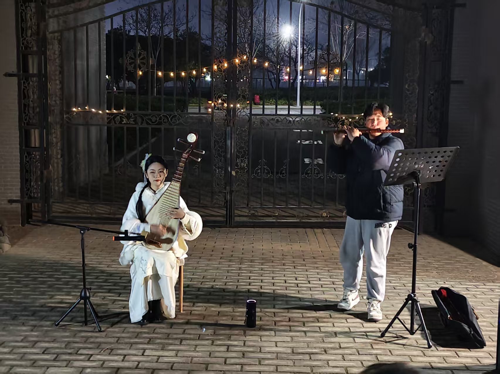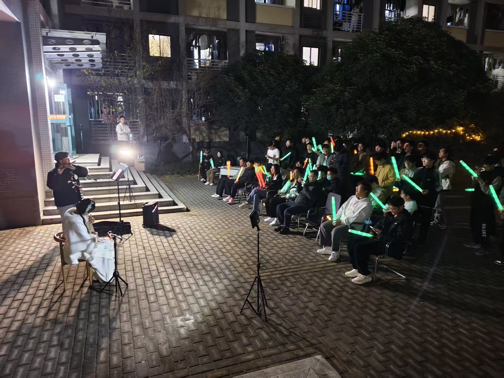 为丰富学生课余生活,提升艺术素养,11月30日晚,学院于梅苑三号楼天井举办 “天井映月”音乐会。学院兼职辅导员王若来、范梦阳,2025级同学迪力夏提担任音乐会表演嘉宾。