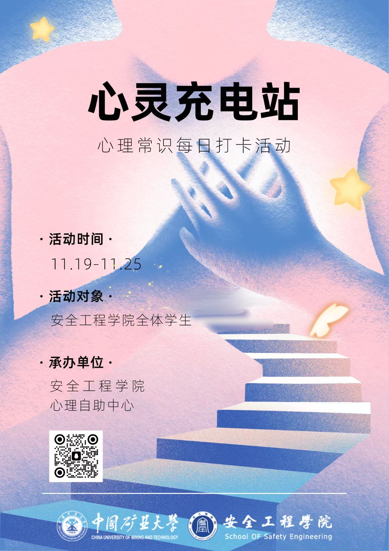 为帮助同学们缓解学业压力,培养自尊自信、理性平和的健康心态,11月19日至25日,学院心理自助中心面向全院学生组织开展了“心灵充电站”心理知识线上打卡活动。