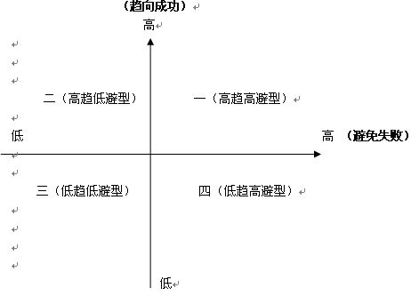 所有人的学习动机可以用两种驱力来描述:追求成功的驱力和避免失败的驱力,而这两种驱力都有高低之分,因此就可以把学习动机分为四种类型,如下图: