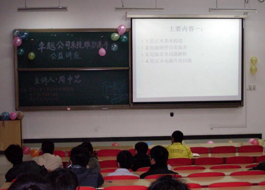 科技学术部主办的模拟小课堂――“系统维护高手”公益讲座在教二C101成功举办,徐州卓越电脑公司电脑软件工程师周中恩应邀担任主讲。