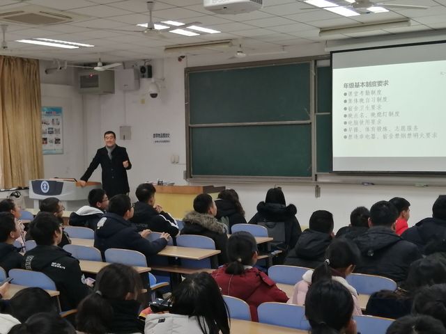 大会伊始,于老师就本学期的工作做出总结,重点强调了集体晚自习、晚点名、晚熄灯和早操晨跑等工作。他指出,本学期绝大部分班级情况良好,希望同学们在下学期能够合理安排,充分利用时间学习。同时,他提出下学期将对晚点名进行重点检查,希望宿舍长与班委一起引导宿舍制定规章制度,共同督促执行。随后,于老师就寒假放假的相关事宜进行了安排,提醒大家在假期注意安全,按时返校。此外,寒假期间,应积极关注学校学院网站等新闻信息,进一步了解学院教师及科研方向,并结合生涯规划对本学期进行总结和再规划,反思不足,及时调整,为接下来的学习生活做好规划。最后,于老师对宿舍安全做出了要求,并为同学们送上了新年祝福。