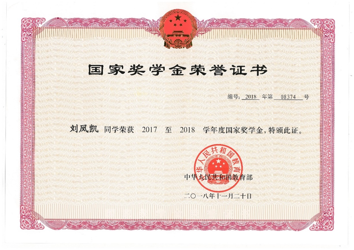主要荣誉:连续两年获得国家奖学金,江苏省高数竞赛二等奖