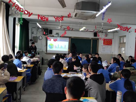 宣讲会以杜鹏飞制作的ppt快闪开始,成功地吸引了班级所有同学的注意力,紧接着对宣讲内容进行了概括与总领。班级的同学们认真地听着宣讲队员的讲解。之后孙雯同学在讲解“矿大的2019”这一部分时,精彩的讲解令同学们对矿大充满了向往。同学们尤其对矿大的美食很感兴趣,当ppt中展示出一张张美食照片后,教室里发出一声声赞叹。田浩同学为大家带来的高三下半学期的学习经验以及高三心态的调整方法,这更是给同学们带来了高考的制胜之宝。整个宣讲过程轻松欢快,同学们不时发出爽朗的笑声。在宣讲的最后环节,田浩采用了定点答疑的形式就同学们关注的问题进行了有针对性的回答,更仔细的为学弟学妹们介绍了徐州与矿大的相关情况同时也分享了高考应试的技巧与志愿填报的注意事项。在宣讲的同时,团队还向高三学生分发矿大宣传手册和矿大纪念品,增加了同学们对矿大的感知。