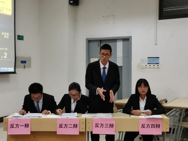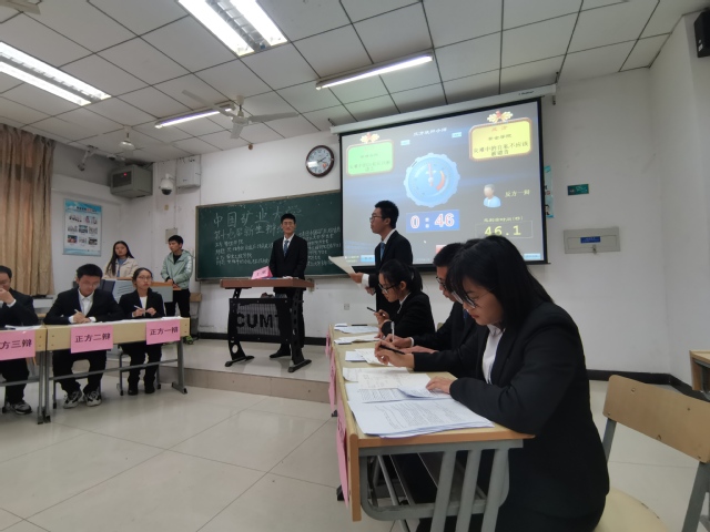 辩论开始前,主持本次辩论的主席简单介绍了双方辩手和评委。随后比赛正式开始,双方进入第一环节开篇立论,管理学院和安全学院一辩分别陈述观点,正式立论。双方立论逻辑清晰,观点鲜明,现场的气氛逐渐热烈起来。之后比赛进入第二轮攻辩环节,双方辩手轮番向对方辩手提问,双方成员言辞犀利却不失风度。其中,安全学院的辩手依然慷慨陈词,条理清晰,逻辑严密。随后,双方进行总结陈词,安全学院四辩论述清晰,环环相扣。在观众提问环节过后,评委对两支辩论队进行详细点评。最后,本次辩论赛的主席宣布了本次辩论赛的结果,安全学院辩论队以3:2的票数取得了此次辩论赛的胜利。